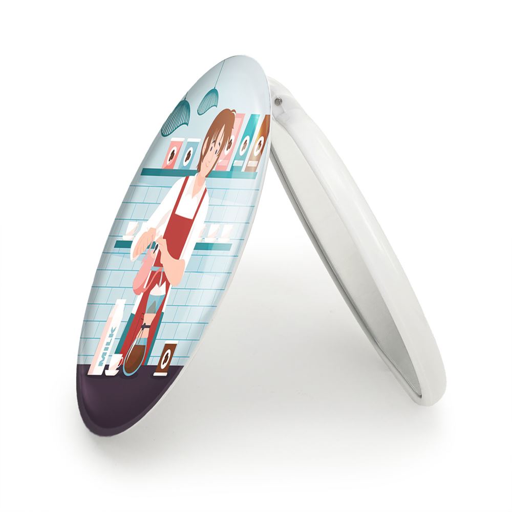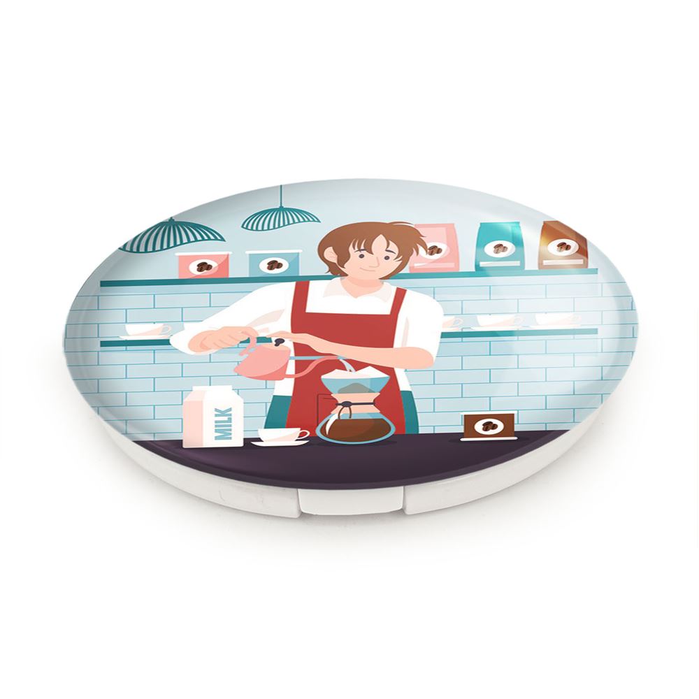 آینه های تاشو باریستا کافه چی خندالو، از جنس پلاستیک فشرده ABS تولید شده و به رنگ سفید می باشد. یکی از آینه ها ابعاد واقعی را نشان داده و دیگری با قابلیت بزرگنمایی، جزئیات را بهتر نمایش می دهد.