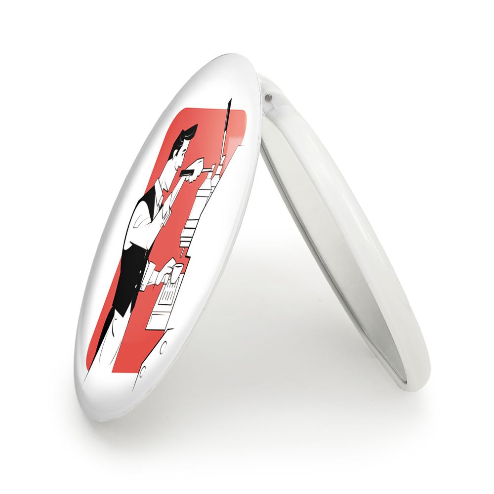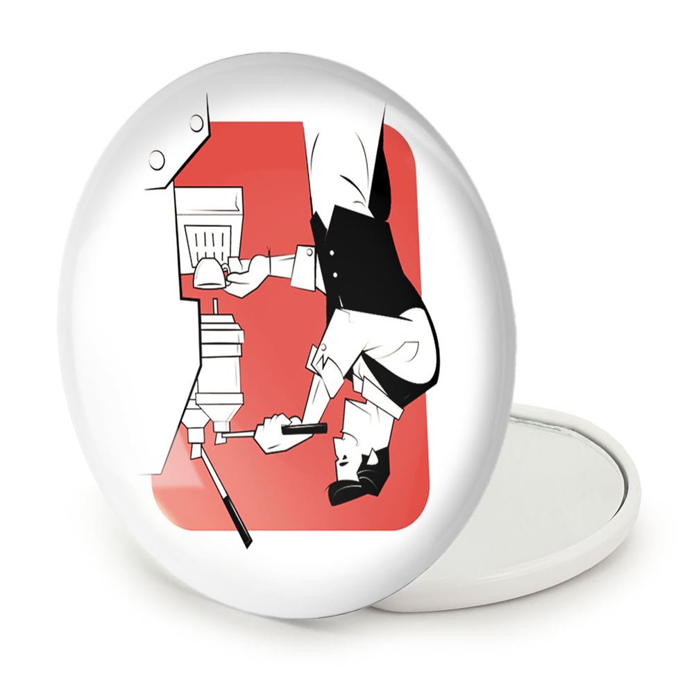 آینه های تاشو باریستا کافه چی خندالو، از جنس پلاستیک فشرده ABS تولید شده و به رنگ سفید می باشد. یکی از آینه ها ابعاد واقعی را نشان داده و دیگری با قابلیت بزرگنمایی، جزئیات را بهتر نمایش می دهد.