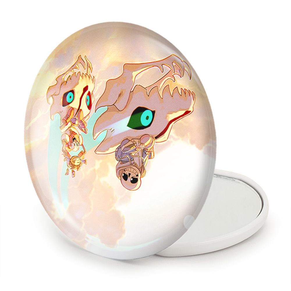 آینه های تاشو بازی آندرتیل (Undertale) خندالو، از جنس پلاستیک فشرده ABS تولید شده و به رنگ سفید می باشد. یکی از آینه ها ابعاد واقعی را نشان داده و دیگری با قابلیت بزرگنمایی، جزئیات را بهتر نمایش می دهد.
