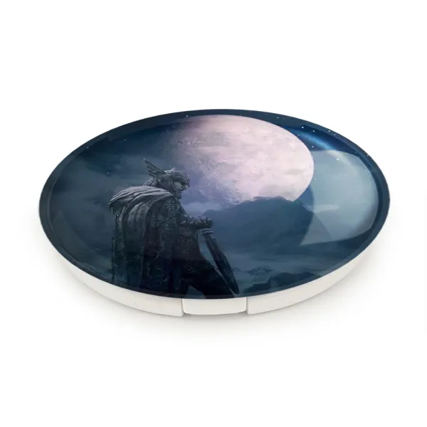 آینه های تاشو بازی اسکایریم (Skyrim) خندالو، از جنس پلاستیک فشرده ABS تولید شده و به رنگ سفید می باشد. یکی از آینه ها ابعاد واقعی را نشان داده و دیگری با قابلیت بزرگنمایی، جزئیات را بهتر نمایش می دهد.