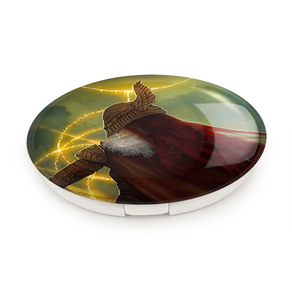 آینه های تاشو بازی الدن رینگ (Elden Ring) خندالو، از جنس پلاستیک فشرده ABS تولید شده و به رنگ سفید می باشد. یکی از آینه ها ابعاد واقعی را نشان داده و دیگری با قابلیت بزرگنمایی، جزئیات را بهتر نمایش می دهد. ابعاد هر یک از آینه ها، دایره ای به قطر 7.5 سانت می باشد که نه خیلی بزرگ و غیر قابل استفاده در کیف آرایشی ست و نه خیلی کوچک که تصویر خاصی در آن مشاهده نشود. آینه تاشو بازی الدن رینگ (Elden Ring) سایزی استاندارد و کارآمد دارد و در هر کیفی جا میگیرد. چاپ طرح بوسیله چاپگرهای دیجیتال شش رنگ با شفافیت و کیفیتی مثال زدنی بر روی یک وجه از بدنه ی آینه انجام گرفته و با روکش لمینت حرارتی پوشیده شده که در مقابل آسیب و خط و خش مقاوم بوده و کیفیت بالایی دارد. درب آینه بوسیله قفل بدنه ی آن، باز نمی ماند و کاملا بسته می شود و مناسب قرار گیری در کیف لوازم آرایش و کیف های کوچک دستی نیز هست. آینه های تاشو بازی الدن رینگ (Elden Ring) خندالو با تنوع طرحی بسیار بالا، سلیقه هر نوع مخاطبی را تامین میکند.