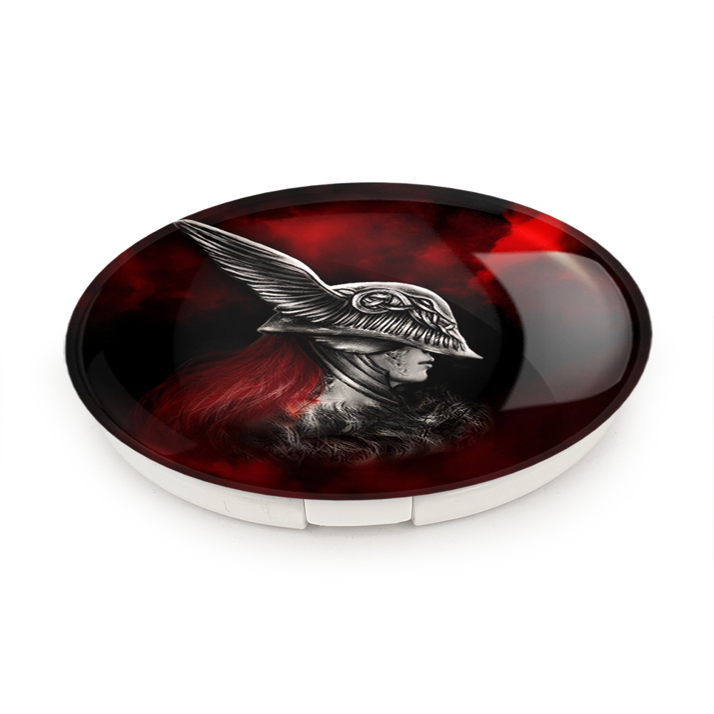 آینه های تاشو بازی الدن رینگ (Elden Ring) خندالو، از جنس پلاستیک فشرده ABS تولید شده و به رنگ سفید می باشد. یکی از آینه ها ابعاد واقعی را نشان داده و دیگری با قابلیت بزرگنمایی، جزئیات را بهتر نمایش می دهد. ابعاد هر یک از آینه ها، دایره ای به قطر 7.5 سانت می باشد که نه خیلی بزرگ و غیر قابل استفاده در کیف آرایشی ست و نه خیلی کوچک که تصویر خاصی در آن مشاهده نشود. آینه تاشو بازی الدن رینگ (Elden Ring) سایزی استاندارد و کارآمد دارد و در هر کیفی جا میگیرد. چاپ طرح بوسیله چاپگرهای دیجیتال شش رنگ با شفافیت و کیفیتی مثال زدنی بر روی یک وجه از بدنه ی آینه انجام گرفته و با روکش لمینت حرارتی پوشیده شده که در مقابل آسیب و خط و خش مقاوم بوده و کیفیت بالایی دارد. درب آینه بوسیله قفل بدنه ی آن، باز نمی ماند و کاملا بسته می شود و مناسب قرار گیری در کیف لوازم آرایش و کیف های کوچک دستی نیز هست. آینه های تاشو بازی الدن رینگ (Elden Ring) خندالو با تنوع طرحی بسیار بالا، سلیقه هر نوع مخاطبی را تامین میکند.