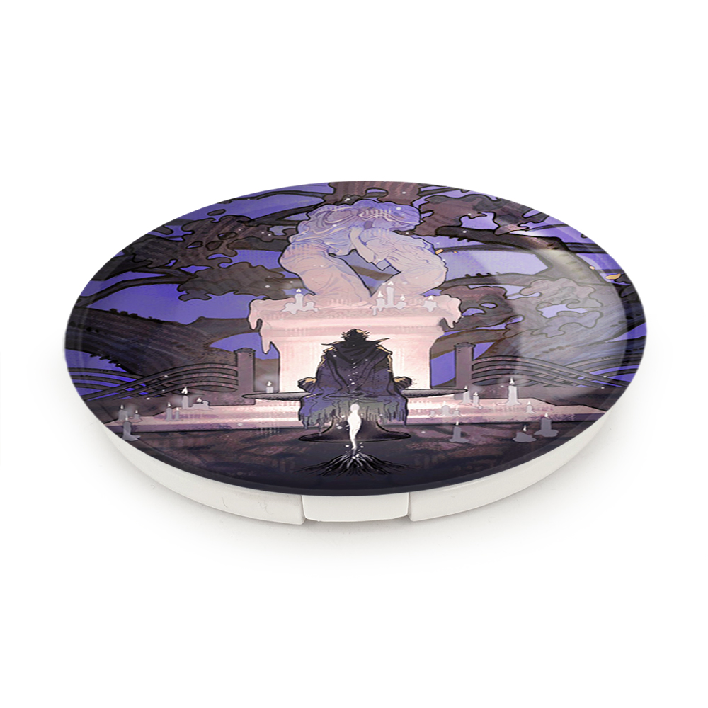 آینه های تاشو بازی الدن رینگ (Elden Ring) خندالو، از جنس پلاستیک فشرده ABS تولید شده و به رنگ سفید می باشد. یکی از آینه ها ابعاد واقعی را نشان داده و دیگری با قابلیت بزرگنمایی، جزئیات را بهتر نمایش می دهد. ابعاد هر یک از آینه ها، دایره ای به قطر 7.5 سانت می باشد که نه خیلی بزرگ و غیر قابل استفاده در کیف آرایشی ست و نه خیلی کوچک که تصویر خاصی در آن مشاهده نشود. آینه تاشو بازی الدن رینگ (Elden Ring) سایزی استاندارد و کارآمد دارد و در هر کیفی جا میگیرد. چاپ طرح بوسیله چاپگرهای دیجیتال شش رنگ با شفافیت و کیفیتی مثال زدنی بر روی یک وجه از بدنه ی آینه انجام گرفته و با روکش لمینت حرارتی پوشیده شده که در مقابل آسیب و خط و خش مقاوم بوده و کیفیت بالایی دارد. درب آینه بوسیله قفل بدنه ی آن، باز نمی ماند و کاملا بسته می شود و مناسب قرار گیری در کیف لوازم آرایش و کیف های کوچک دستی نیز هست. آینه های تاشو بازی الدن رینگ (Elden Ring) خندالو با تنوع طرحی بسیار بالا، سلیقه هر نوع مخاطبی را تامین میکند.