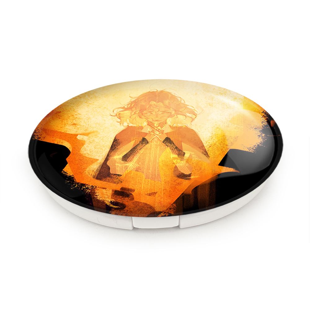 آینه های تاشو بازی الدن رینگ (Elden Ring) خندالو، از جنس پلاستیک فشرده ABS تولید شده و به رنگ سفید می باشد. یکی از آینه ها ابعاد واقعی را نشان داده و دیگری با قابلیت بزرگنمایی، جزئیات را بهتر نمایش می دهد. ابعاد هر یک از آینه ها، دایره ای به قطر 7.5 سانت می باشد که نه خیلی بزرگ و غیر قابل استفاده در کیف آرایشی ست و نه خیلی کوچک که تصویر خاصی در آن مشاهده نشود. آینه تاشو بازی الدن رینگ (Elden Ring) سایزی استاندارد و کارآمد دارد و در هر کیفی جا میگیرد. چاپ طرح بوسیله چاپگرهای دیجیتال شش رنگ با شفافیت و کیفیتی مثال زدنی بر روی یک وجه از بدنه ی آینه انجام گرفته و با روکش لمینت حرارتی پوشیده شده که در مقابل آسیب و خط و خش مقاوم بوده و کیفیت بالایی دارد. درب آینه بوسیله قفل بدنه ی آن، باز نمی ماند و کاملا بسته می شود و مناسب قرار گیری در کیف لوازم آرایش و کیف های کوچک دستی نیز هست. آینه های تاشو بازی الدن رینگ (Elden Ring) خندالو با تنوع طرحی بسیار بالا، سلیقه هر نوع مخاطبی را تامین میکند.