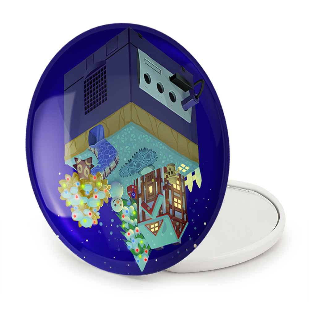 آینه های تاشو بازی انیمال کراسینگ (Animal Crossing) خندالو، از جنس پلاستیک فشرده ABS تولید شده و به رنگ سفید می باشد. یکی از آینه ها ابعاد واقعی را نشان داده و دیگری با قابلیت بزرگنمایی، جزئیات را بهتر نمایش می دهد. ابعاد هر یک از آینه ها، دایره ای به قطر 7.5 سانت می باشد که نه خیلی بزرگ و غیر قابل استفاده در کیف آرایشی ست و نه خیلی کوچک که تصویر خاصی در آن مشاهده نشود. آینه تاشو بازی انیمال کراسینگ (Animal Crossing) سایزی استاندارد و کارآمد دارد و در هر کیفی جا میگیرد. چاپ طرح بوسیله چاپگرهای دیجیتال شش رنگ با شفافیت و کیفیتی مثال زدنی بر روی یک وجه از بدنه ی آینه انجام گرفته و با روکش لمینت حرارتی پوشیده شده که در مقابل آسیب و خط و خش مقاوم بوده و کیفیت بالایی دارد. درب آینه بوسیله قفل بدنه ی آن، باز نمی ماند و کاملا بسته می شود و مناسب قرار گیری در کیف لوازم آرایش و کیف های کوچک دستی نیز هست. آینه های تاشو بازی انیمال کراسینگ (Animal Crossing) خندالو با تنوع طرحی بسیار بالا، سلیقه هر نوع مخاطبی را تامین میکند.