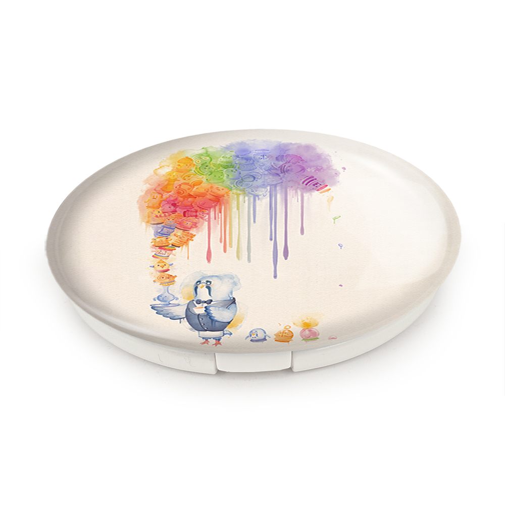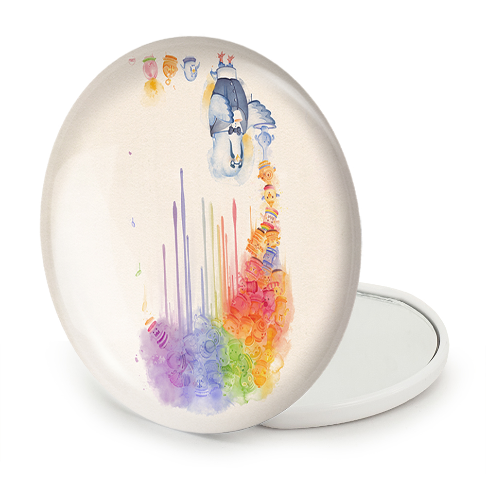 آینه های تاشو بازی انیمال کراسینگ (Animal Crossing) خندالو، از جنس پلاستیک فشرده ABS تولید شده و به رنگ سفید می باشد. یکی از آینه ها ابعاد واقعی را نشان داده و دیگری با قابلیت بزرگنمایی، جزئیات را بهتر نمایش می دهد. ابعاد هر یک از آینه ها، دایره ای به قطر 7.5 سانت می باشد که نه خیلی بزرگ و غیر قابل استفاده در کیف آرایشی ست و نه خیلی کوچک که تصویر خاصی در آن مشاهده نشود. آینه تاشو بازی انیمال کراسینگ (Animal Crossing) سایزی استاندارد و کارآمد دارد و در هر کیفی جا میگیرد. چاپ طرح بوسیله چاپگرهای دیجیتال شش رنگ با شفافیت و کیفیتی مثال زدنی بر روی یک وجه از بدنه ی آینه انجام گرفته و با روکش لمینت حرارتی پوشیده شده که در مقابل آسیب و خط و خش مقاوم بوده و کیفیت بالایی دارد. درب آینه بوسیله قفل بدنه ی آن، باز نمی ماند و کاملا بسته می شود و مناسب قرار گیری در کیف لوازم آرایش و کیف های کوچک دستی نیز هست. آینه های تاشو بازی انیمال کراسینگ (Animal Crossing) خندالو با تنوع طرحی بسیار بالا، سلیقه هر نوع مخاطبی را تامین میکند.