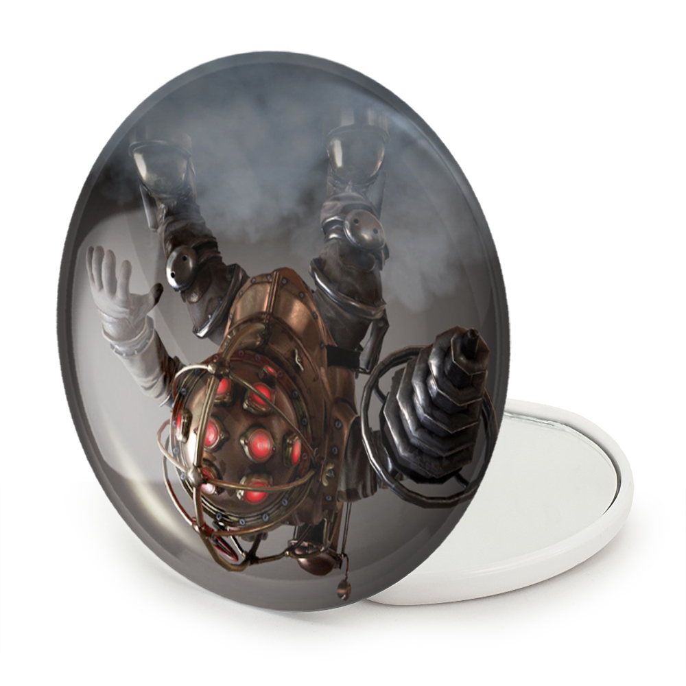آینه های تاشو بازی بایوشاک (Bioshock) خندالو، از جنس پلاستیک فشرده ABS تولید شده و به رنگ سفید می باشد. یکی از آینه ها ابعاد واقعی را نشان داده و دیگری با قابلیت بزرگنمایی، جزئیات را بهتر نمایش می دهد.