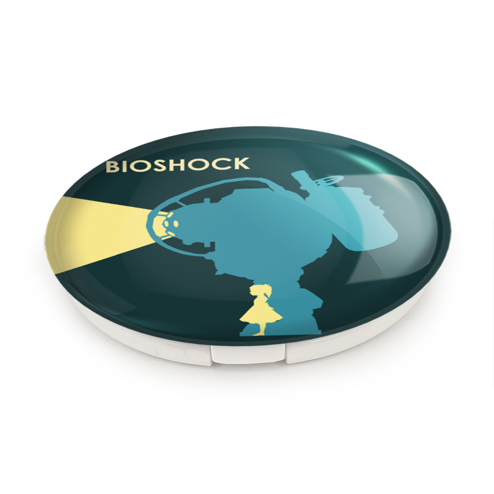 آینه های تاشو بازی بایوشاک (Bioshock) خندالو، از جنس پلاستیک فشرده ABS تولید شده و به رنگ سفید می باشد. یکی از آینه ها ابعاد واقعی را نشان داده و دیگری با قابلیت بزرگنمایی، جزئیات را بهتر نمایش می دهد.