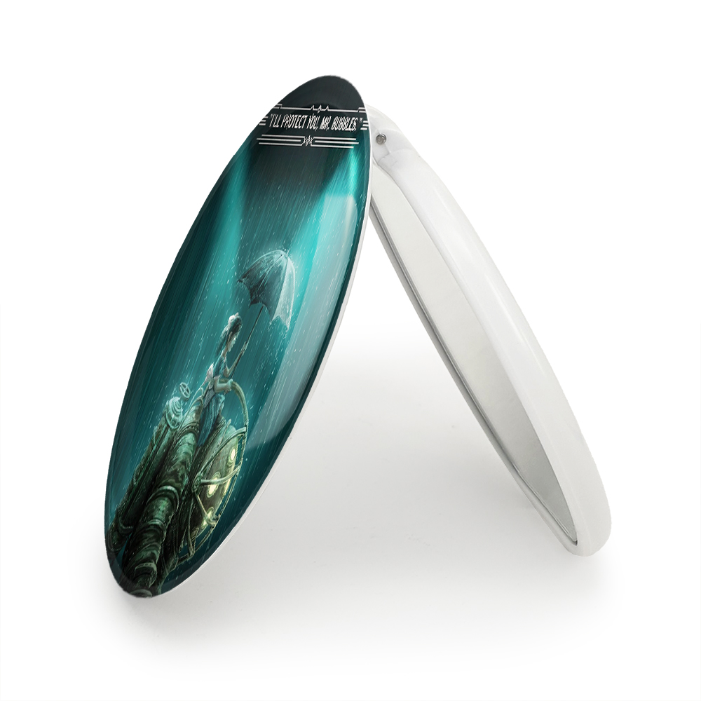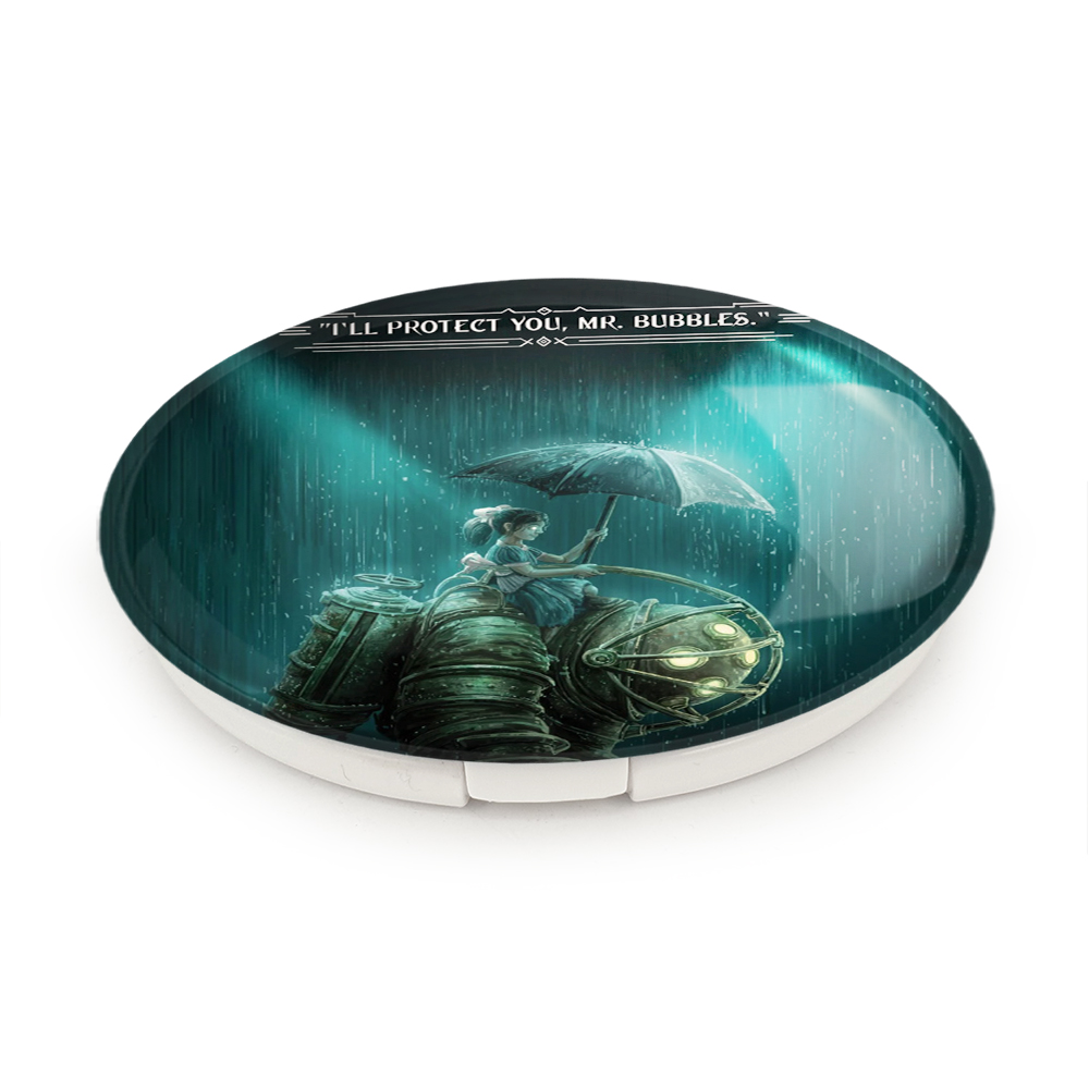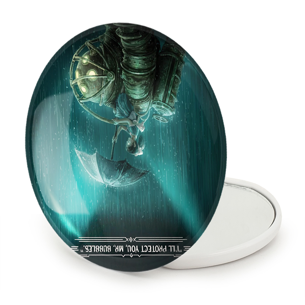 آینه های تاشو بازی بایوشاک (Bioshock) خندالو، از جنس پلاستیک فشرده ABS تولید شده و به رنگ سفید می باشد. یکی از آینه ها ابعاد واقعی را نشان داده و دیگری با قابلیت بزرگنمایی، جزئیات را بهتر نمایش می دهد.