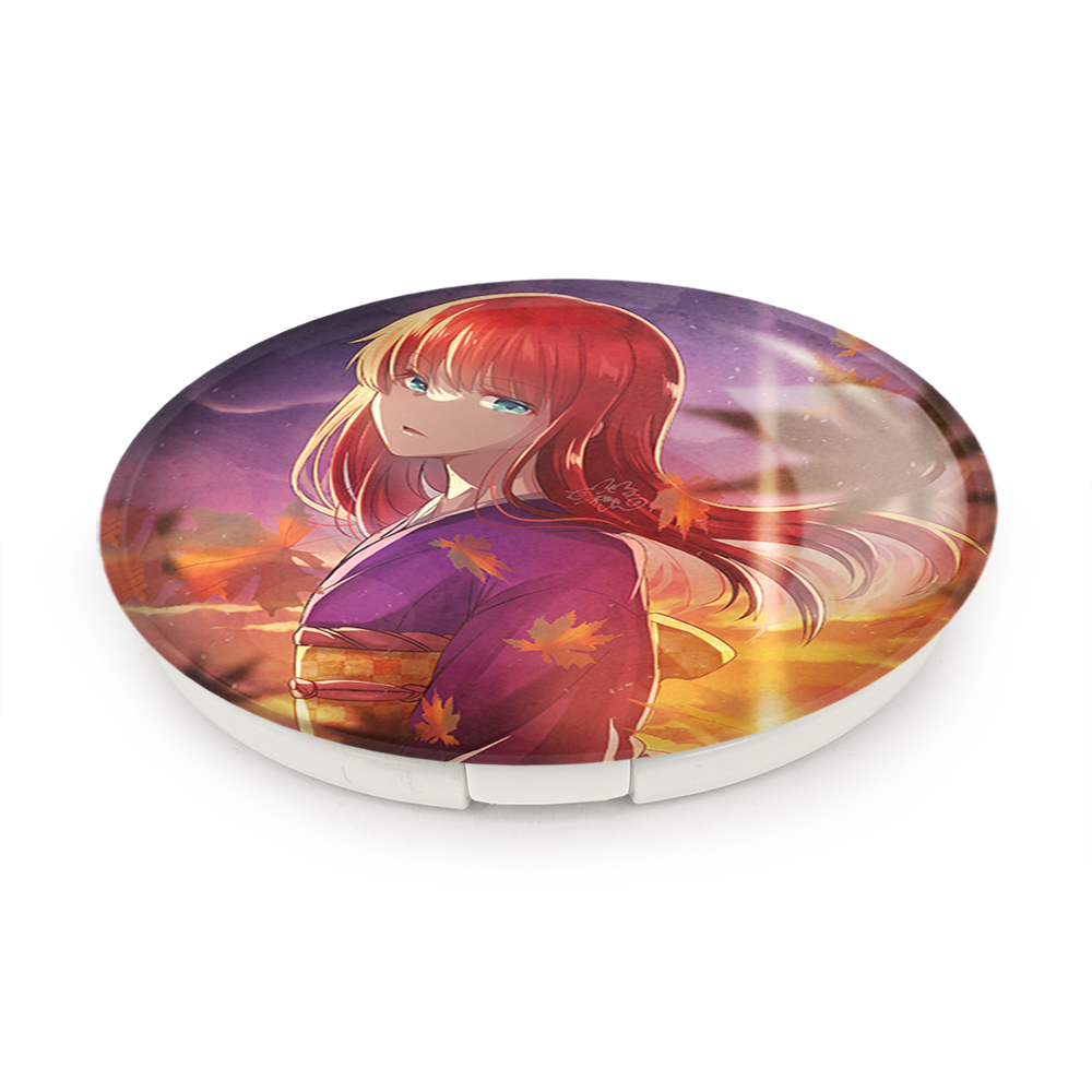 آینه های تاشو بازی تسوکی هیمه (Tsukihime) خندالو، از جنس پلاستیک فشرده ABS تولید شده و به رنگ سفید می باشد. یکی از آینه ها ابعاد واقعی را نشان داده و دیگری با قابلیت بزرگنمایی، جزئیات را بهتر نمایش می دهد. ابعاد هر یک از آینه ها، دایره ای به قطر 7.5 سانت می باشد که نه خیلی بزرگ و غیر قابل استفاده در کیف آرایشی ست و نه خیلی کوچک که تصویر خاصی در آن مشاهده نشود. آینه تاشو بازی تسوکی هیمه (Tsukihime) سایزی استاندارد و کارآمد دارد و در هر کیفی جا میگیرد. چاپ طرح بوسیله چاپگرهای دیجیتال شش رنگ با شفافیت و کیفیتی مثال زدنی بر روی یک وجه از بدنه ی آینه انجام گرفته و با روکش لمینت حرارتی پوشیده شده که در مقابل آسیب و خط و خش مقاوم بوده و کیفیت بالایی دارد. درب آینه بوسیله قفل بدنه ی آن، باز نمی ماند و کاملا بسته می شود و مناسب قرار گیری در کیف لوازم آرایش و کیف های کوچک دستی نیز هست. آینه های تاشو بازی تسوکی هیمه (Tsukihime) خندالو با تنوع طرحی بسیار بالا، سلیقه هر نوع مخاطبی را تامین میکند.