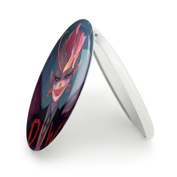 آینه های تاشو بازی دوتا (Dota 2) خندالو، از جنس پلاستیک فشرده ABS تولید شده و به رنگ سفید می باشد. یکی از آینه ها ابعاد واقعی را نشان داده و دیگری با قابلیت بزرگنمایی، جزئیات را بهتر نمایش می دهد. ابعاد هر یک از آینه ها، دایره ای به قطر 7.5 سانت می باشد که نه خیلی بزرگ و غیر قابل استفاده در کیف آرایشی ست و نه خیلی کوچک که تصویر خاصی در آن مشاهده نشود. آینه تاشو بازی دوتا (Dota 2) سایزی استاندارد و کارآمد دارد و در هر کیفی جا میگیرد. چاپ طرح بوسیله چاپگرهای دیجیتال شش رنگ با شفافیت و کیفیتی مثال زدنی بر روی یک وجه از بدنه ی آینه انجام گرفته و با روکش لمینت حرارتی پوشیده شده که در مقابل آسیب و خط و خش مقاوم بوده و کیفیت بالایی دارد. درب آینه بوسیله قفل بدنه ی آن، باز نمی ماند و کاملا بسته می شود و مناسب قرار گیری در کیف لوازم آرایش و کیف های کوچک دستی نیز هست. آینه های تاشو بازی دوتا (Dota 2) خندالو با تنوع طرحی بسیار بالا، سلیقه هر نوع مخاطبی را تامین میکند.