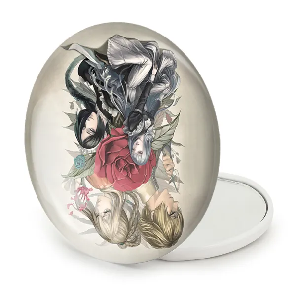 آینه های تاشو بازی فاتا مورگانا (Fata Morgana) خندالو، از جنس پلاستیک فشرده ABS تولید شده و به رنگ سفید می باشد. یکی از آینه ها ابعاد واقعی را نشان داده و دیگری با قابلیت بزرگنمایی، جزئیات را بهتر نمایش می دهد. ابعاد هر یک از آینه ها، دایره ای به قطر 7.5 سانت می باشد که نه خیلی بزرگ و غیر قابل استفاده در کیف آرایشی ست و نه خیلی کوچک که تصویر خاصی در آن مشاهده نشود. آینه تاشو بازی فاتا مورگانا (Fata Morgana) سایزی استاندارد و کارآمد دارد و در هر کیفی جا میگیرد. چاپ طرح بوسیله چاپگرهای دیجیتال شش رنگ با شفافیت و کیفیتی مثال زدنی بر روی یک وجه از بدنه ی آینه انجام گرفته و با روکش لمینت حرارتی پوشیده شده که در مقابل آسیب و خط و خش مقاوم بوده و کیفیت بالایی دارد. درب آینه بوسیله قفل بدنه ی آن، باز نمی ماند و کاملا بسته می شود و مناسب قرار گیری در کیف لوازم آرایش و کیف های کوچک دستی نیز هست. آینه های تاشو بازی فاتا مورگانا (Fata Morgana) خندالو با تنوع طرحی بسیار بالا، سلیقه هر نوع مخاطبی را تامین میکند.