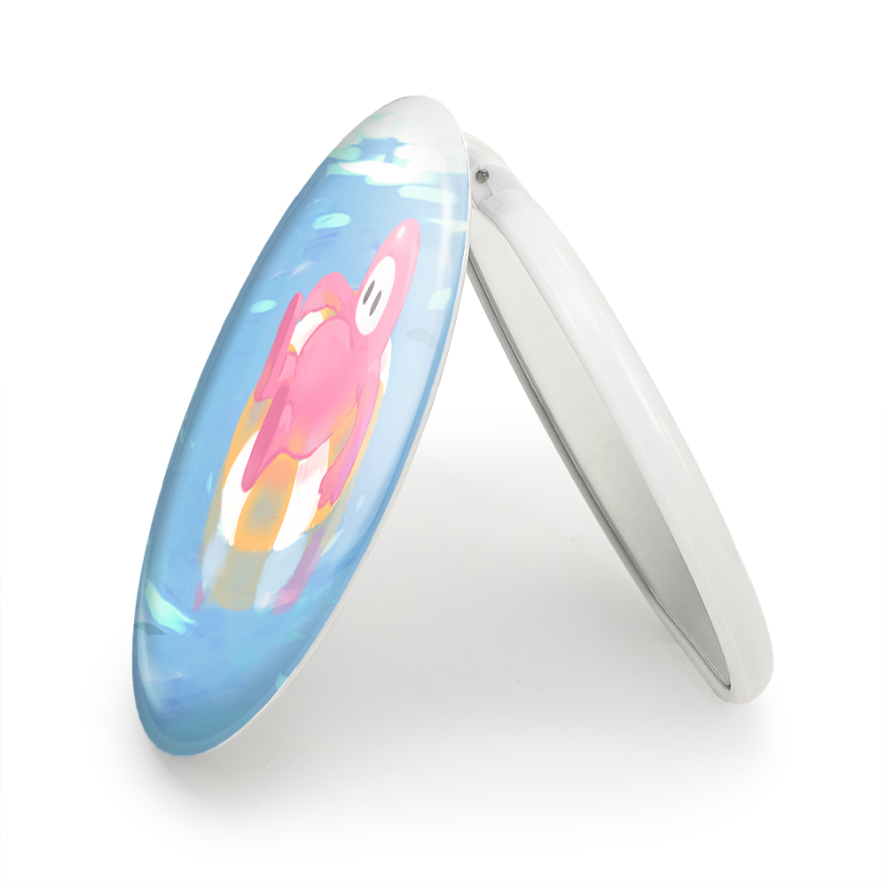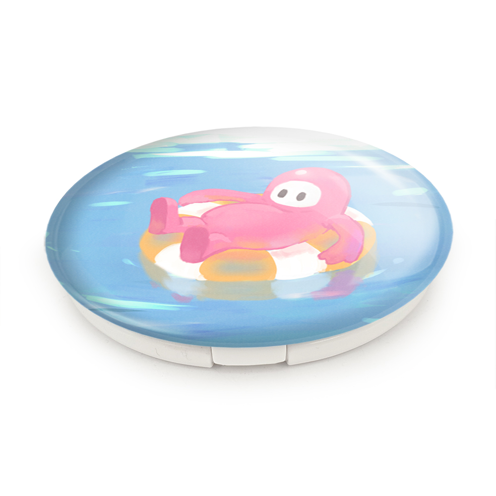 آینه های تاشو بازی فال گایز (Fall Guys) خندالو، از جنس پلاستیک فشرده ABS تولید شده و به رنگ سفید می باشد. یکی از آینه ها ابعاد واقعی را نشان داده و دیگری با قابلیت بزرگنمایی، جزئیات را بهتر نمایش می دهد. ابعاد هر یک از آینه ها، دایره ای به قطر 7.5 سانت می باشد که نه خیلی بزرگ و غیر قابل استفاده در کیف آرایشی ست و نه خیلی کوچک که تصویر خاصی در آن مشاهده نشود. آینه تاشو بازی فال گایز (Fall Guys) سایزی استاندارد و کارآمد دارد و در هر کیفی جا میگیرد. چاپ طرح بوسیله چاپگرهای دیجیتال شش رنگ با شفافیت و کیفیتی مثال زدنی بر روی یک وجه از بدنه ی آینه انجام گرفته و با روکش لمینت حرارتی پوشیده شده که در مقابل آسیب و خط و خش مقاوم بوده و کیفیت بالایی دارد. درب آینه بوسیله قفل بدنه ی آن، باز نمی ماند و کاملا بسته می شود و مناسب قرار گیری در کیف لوازم آرایش و کیف های کوچک دستی نیز هست. آینه های تاشو بازی فال گایز (Fall Guys) خندالو با تنوع طرحی بسیار بالا، سلیقه هر نوع مخاطبی را تامین میکند.