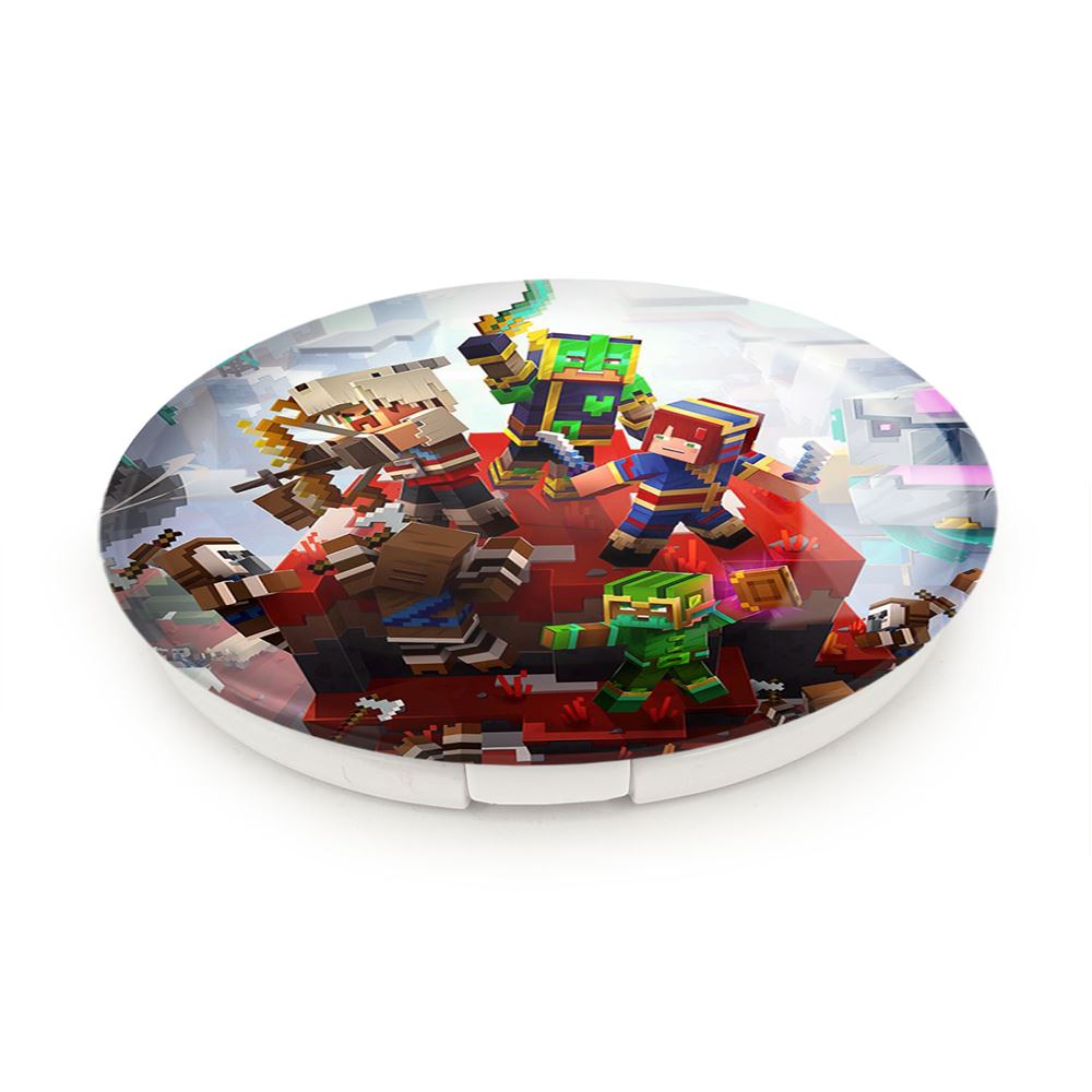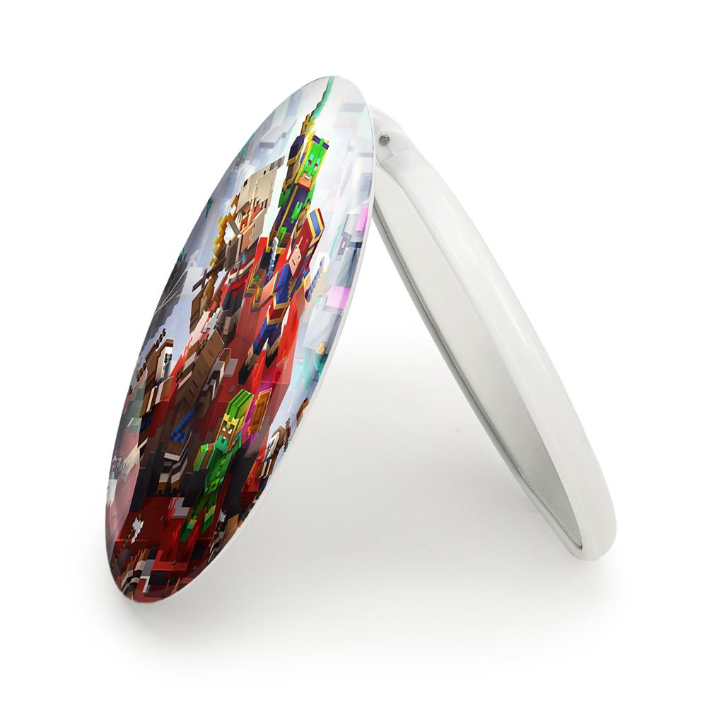 آینه های تاشو بازی ماینکرافت Minecraft خندالو، از جنس پلاستیک فشرده ABS تولید شده و به رنگ سفید می باشد. یکی از آینه ها ابعاد واقعی را نشان داده و دیگری با قابلیت بزرگنمایی، جزئیات را بهتر نمایش می دهد. ابعاد هر یک از آینه ها، دایره ای به قطر 7.5 سانت می باشد که نه خیلی بزرگ و غیر قابل استفاده در کیف آرایشی ست و نه خیلی کوچک که تصویر خاصی در آن مشاهده نشود. آینه تاشو بازی ماینکرافت Minecraft سایزی استاندارد و کارآمد دارد و در هر کیفی جا میگیرد. چاپ طرح بوسیله چاپگرهای دیجیتال شش رنگ با شفافیت و کیفیتی مثال زدنی بر روی یک وجه از بدنه ی آینه انجام گرفته و با روکش لمینت حرارتی پوشیده شده که در مقابل آسیب و خط و خش مقاوم بوده و کیفیت بالایی دارد. درب آینه بوسیله قفل بدنه ی آن، باز نمی ماند و کاملا بسته می شود و مناسب قرار گیری در کیف لوازم آرایش و کیف های کوچک دستی نیز هست. آینه های تاشو بازی ماینکرافت Minecraft خندالو با تنوع طرحی بسیار بالا، سلیقه هر نوع مخاطبی را تامین میکند.