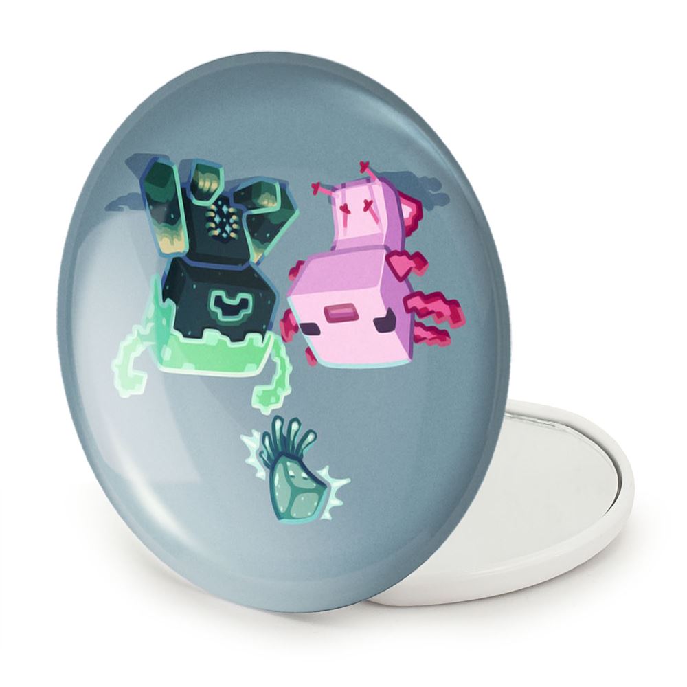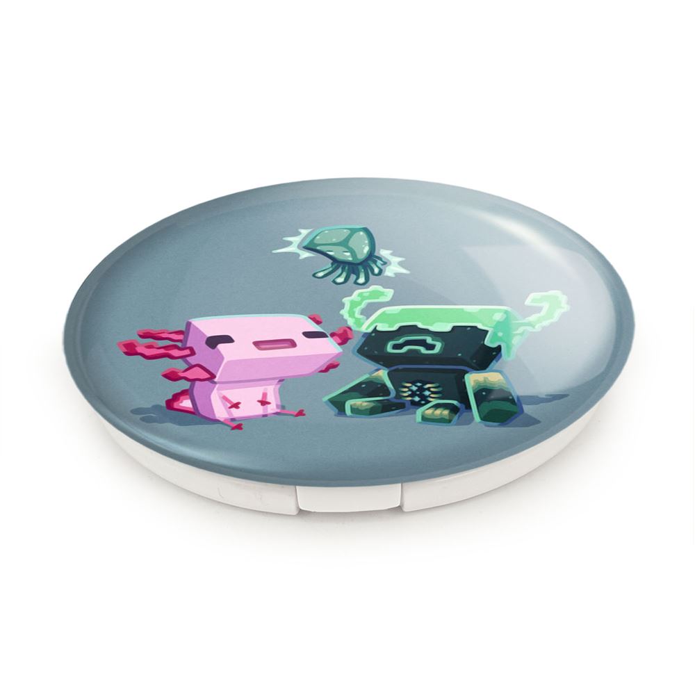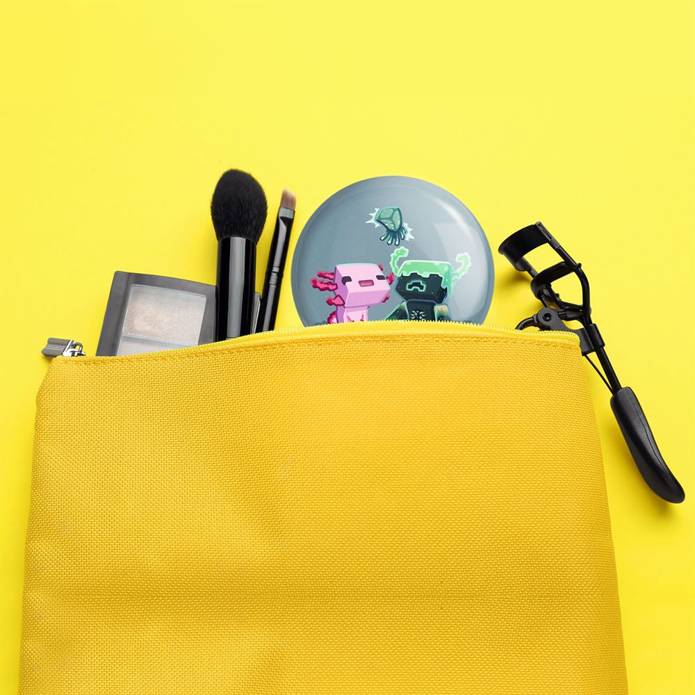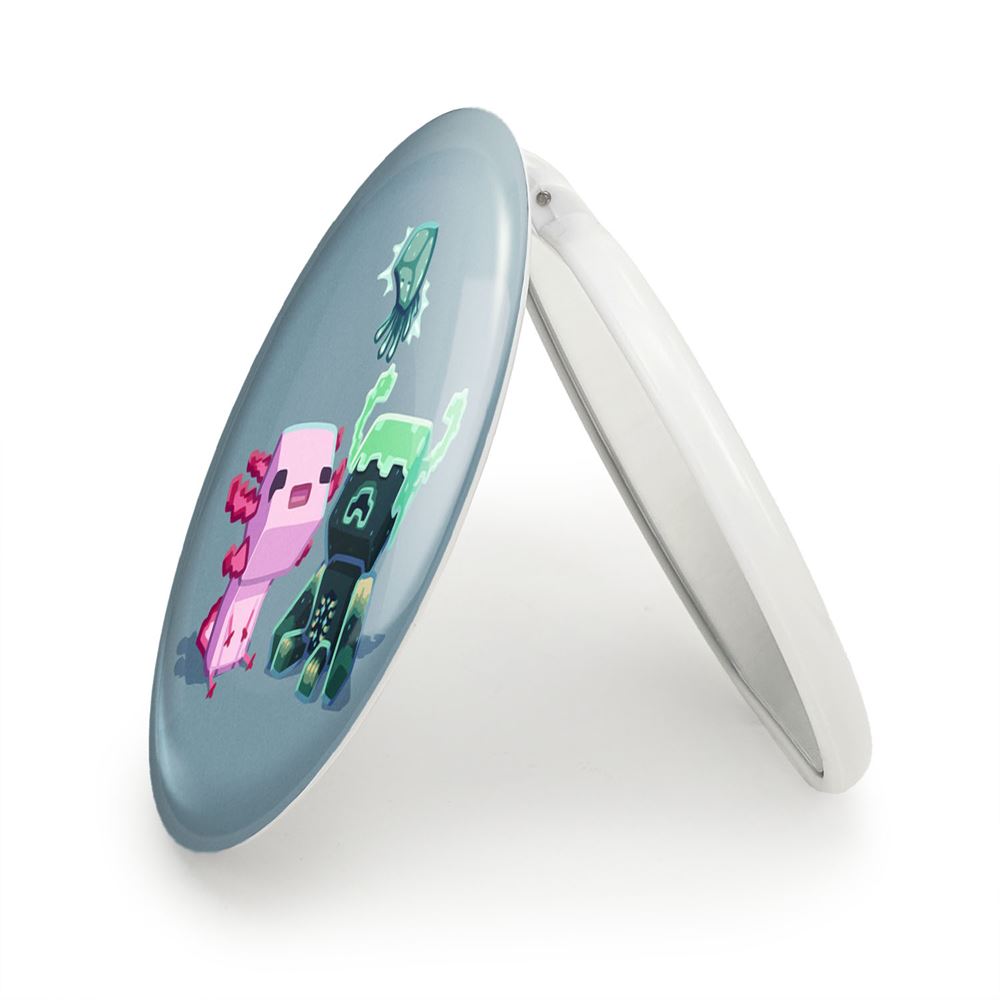 آینه های تاشو بازی ماینکرافت Minecraft خندالو، از جنس پلاستیک فشرده ABS تولید شده و به رنگ سفید می باشد. یکی از آینه ها ابعاد واقعی را نشان داده و دیگری با قابلیت بزرگنمایی، جزئیات را بهتر نمایش می دهد. ابعاد هر یک از آینه ها، دایره ای به قطر 7.5 سانت می باشد که نه خیلی بزرگ و غیر قابل استفاده در کیف آرایشی ست و نه خیلی کوچک که تصویر خاصی در آن مشاهده نشود. آینه تاشو بازی ماینکرافت Minecraft سایزی استاندارد و کارآمد دارد و در هر کیفی جا میگیرد. چاپ طرح بوسیله چاپگرهای دیجیتال شش رنگ با شفافیت و کیفیتی مثال زدنی بر روی یک وجه از بدنه ی آینه انجام گرفته و با روکش لمینت حرارتی پوشیده شده که در مقابل آسیب و خط و خش مقاوم بوده و کیفیت بالایی دارد. درب آینه بوسیله قفل بدنه ی آن، باز نمی ماند و کاملا بسته می شود و مناسب قرار گیری در کیف لوازم آرایش و کیف های کوچک دستی نیز هست. آینه های تاشو بازی ماینکرافت Minecraft خندالو با تنوع طرحی بسیار بالا، سلیقه هر نوع مخاطبی را تامین میکند.