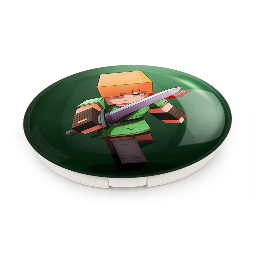 آینه های تاشو بازی ماینکرافت (Minecraft) خندالو، از جنس پلاستیک فشرده ABS تولید شده و به رنگ سفید می باشد. یکی از آینه ها ابعاد واقعی را نشان داده و دیگری با قابلیت بزرگنمایی، جزئیات را بهتر نمایش می دهد. ابعاد هر یک از آینه ها، دایره ای به قطر 7.5 سانت می باشد که نه خیلی بزرگ و غیر قابل استفاده در کیف آرایشی ست و نه خیلی کوچک که تصویر خاصی در آن مشاهده نشود. آینه تاشو بازی ماینکرافت (Minecraft) سایزی استاندارد و کارآمد دارد و در هر کیفی جا میگیرد. چاپ طرح بوسیله چاپگرهای دیجیتال شش رنگ با شفافیت و کیفیتی مثال زدنی بر روی یک وجه از بدنه ی آینه انجام گرفته و با روکش لمینت حرارتی پوشیده شده که در مقابل آسیب و خط و خش مقاوم بوده و کیفیت بالایی دارد. درب آینه بوسیله قفل بدنه ی آن، باز نمی ماند و کاملا بسته می شود و مناسب قرار گیری در کیف لوازم آرایش و کیف های کوچک دستی نیز هست. آینه های تاشو بازی ماینکرافت (Minecraft) خندالو با تنوع طرحی بسیار بالا، سلیقه هر نوع مخاطبی را تامین میکند.