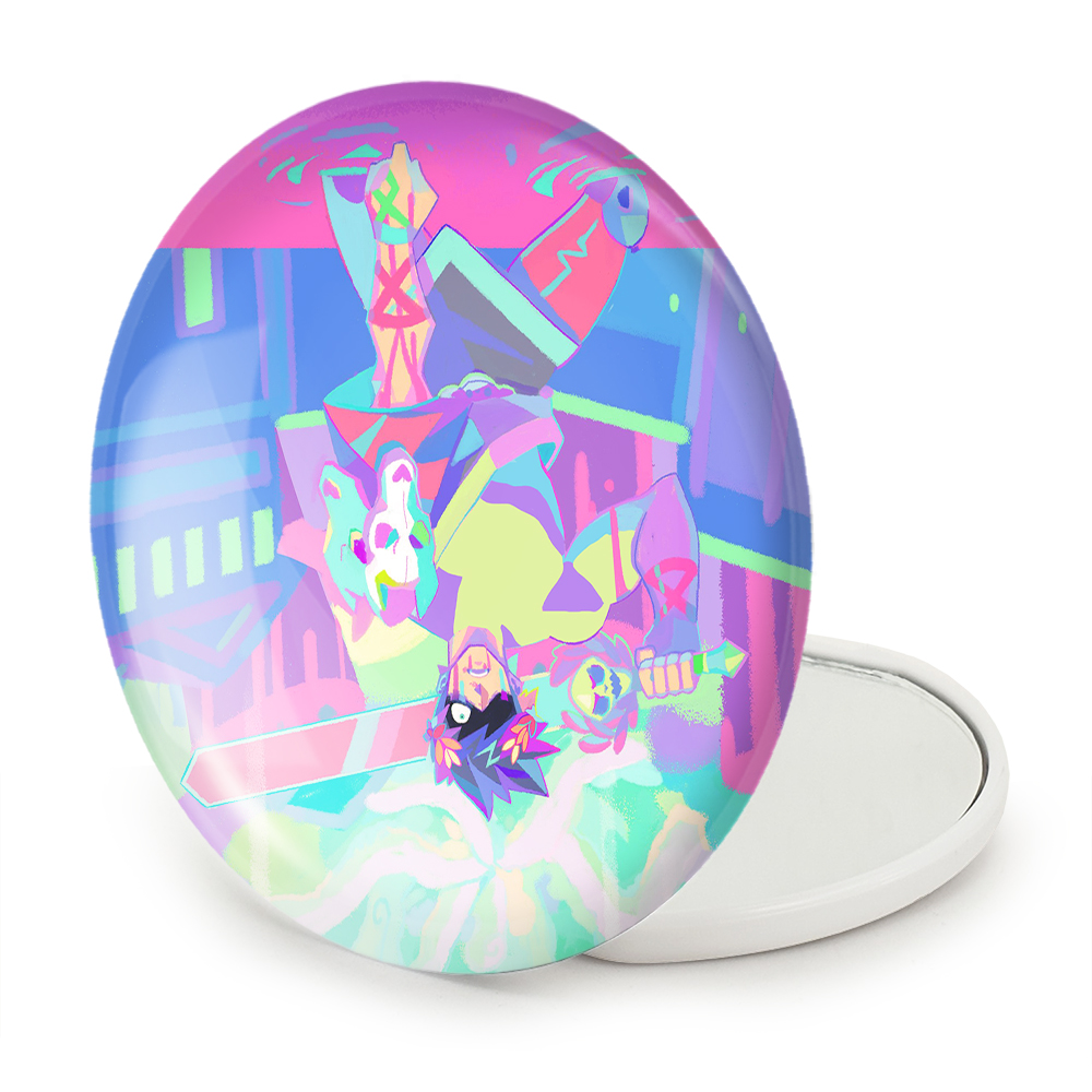 آینه های تاشو بازی هادس (Hades) خندالو، از جنس پلاستیک فشرده ABS تولید شده و به رنگ سفید می باشد. یکی از آینه ها ابعاد واقعی را نشان داده و دیگری با قابلیت بزرگنمایی، جزئیات را بهتر نمایش می دهد. ابعاد هر یک از آینه ها، دایره ای به قطر 7.5 سانت می باشد که نه خیلی بزرگ و غیر قابل استفاده در کیف آرایشی ست و نه خیلی کوچک که تصویر خاصی در آن مشاهده نشود. آینه تاشو بازی هادس (Hades) سایزی استاندارد و کارآمد دارد و در هر کیفی جا میگیرد. چاپ طرح بوسیله چاپگرهای دیجیتال شش رنگ با شفافیت و کیفیتی مثال زدنی بر روی یک وجه از بدنه ی آینه انجام گرفته و با روکش لمینت حرارتی پوشیده شده که در مقابل آسیب و خط و خش مقاوم بوده و کیفیت بالایی دارد. درب آینه بوسیله قفل بدنه ی آن، باز نمی ماند و کاملا بسته می شود و مناسب قرار گیری در کیف لوازم آرایش و کیف های کوچک دستی نیز هست. آینه های تاشو بازی هادس (Hades) خندالو با تنوع طرحی بسیار بالا، سلیقه هر نوع مخاطبی را تامین میکند.
