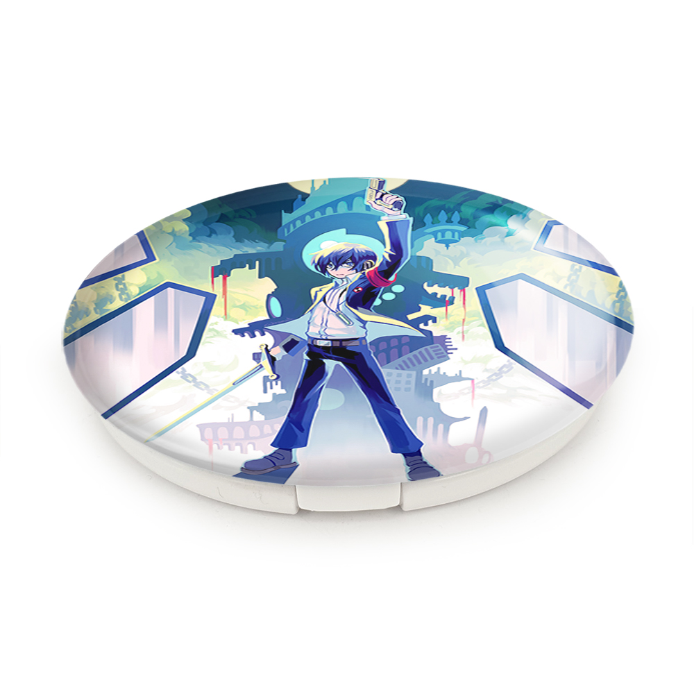 آینه های تاشو بازی پرسونا (Persona) خندالو، از جنس پلاستیک فشرده ABS تولید شده و به رنگ سفید می باشد. یکی از آینه ها ابعاد واقعی را نشان داده و دیگری با قابلیت بزرگنمایی، جزئیات را بهتر نمایش می دهد. ابعاد هر یک از آینه ها، دایره ای به قطر 7.5 سانت می باشد که نه خیلی بزرگ و غیر قابل استفاده در کیف آرایشی ست و نه خیلی کوچک که تصویر خاصی در آن مشاهده نشود. آینه تاشو بازی پرسونا (Persona) سایزی استاندارد و کارآمد دارد و در هر کیفی جا میگیرد. چاپ طرح بوسیله چاپگرهای دیجیتال شش رنگ با شفافیت و کیفیتی مثال زدنی بر روی یک وجه از بدنه ی آینه انجام گرفته و با روکش لمینت حرارتی پوشیده شده که در مقابل آسیب و خط و خش مقاوم بوده و کیفیت بالایی دارد. درب آینه بوسیله قفل بدنه ی آن، باز نمی ماند و کاملا بسته می شود و مناسب قرار گیری در کیف لوازم آرایش و کیف های کوچک دستی نیز هست. آینه های تاشو بازی پرسونا (Persona) خندالو با تنوع طرحی بسیار بالا، سلیقه هر نوع مخاطبی را تامین میکند.