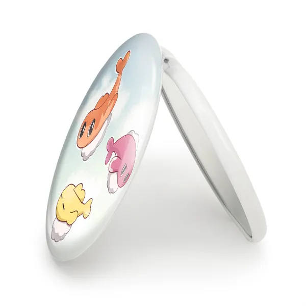 آینه های تاشو بازی پوکمون (pokemon) خندالو، از جنس پلاستیک فشرده ABS تولید شده و به رنگ سفید می باشد. یکی از آینه ها ابعاد واقعی را نشان داده و دیگری با قابلیت بزرگنمایی، جزئیات را بهتر نمایش می دهد.