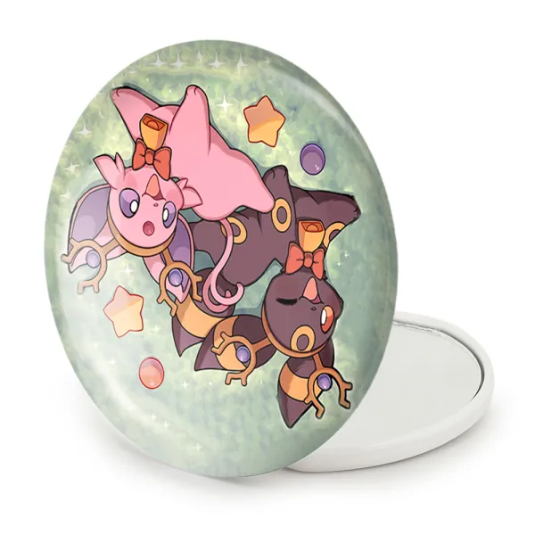 آینه های تاشو بازی پوکمون (pokemon) خندالو، از جنس پلاستیک فشرده ABS تولید شده و به رنگ سفید می باشد. یکی از آینه ها ابعاد واقعی را نشان داده و دیگری با قابلیت بزرگنمایی، جزئیات را بهتر نمایش می دهد.