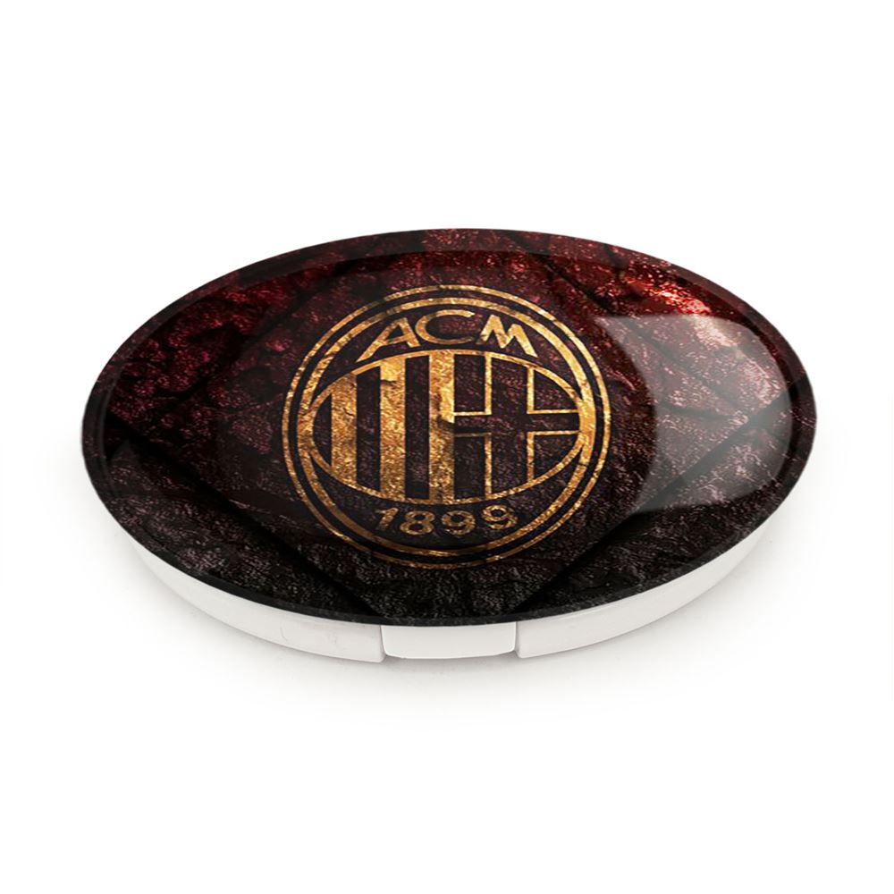 آینه های تاشو باشگاه آث میلان A.C. Milan خندالو، از جنس پلاستیک فشرده ABS تولید شده و به رنگ سفید می باشد. یکی از آینه ها ابعاد واقعی را نشان داده و دیگری با قابلیت بزرگنمایی، جزئیات را بهتر نمایش می دهد. ابعاد هر یک از آینه ها، دایره ای به قطر 7.5 سانت می باشد که نه خیلی بزرگ و غیر قابل استفاده در کیف آرایشی ست و نه خیلی کوچک که تصویر خاصی در آن مشاهده نشود. آینه تاشو باشگاه آث میلان A.C. Milan سایزی استاندارد و کارآمد دارد و در هر کیفی جا میگیرد. چاپ طرح بوسیله چاپگرهای دیجیتال شش رنگ با شفافیت و کیفیتی مثال زدنی بر روی یک وجه از بدنه ی آینه انجام گرفته و با روکش لمینت حرارتی پوشیده شده که در مقابل آسیب و خط و خش مقاوم بوده و کیفیت بالایی دارد. درب آینه بوسیله قفل بدنه ی آن، باز نمی ماند و کاملا بسته می شود و مناسب قرار گیری در کیف لوازم آرایش و کیف های کوچک دستی نیز هست. آینه های تاشو باشگاه آث میلان A.C. Milan خندالو با تنوع طرحی بسیار بالا، سلیقه هر نوع مخاطبی را تامین میکند.