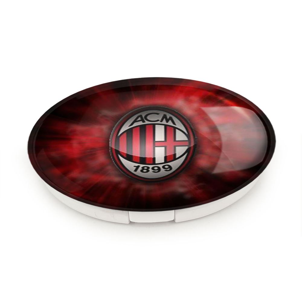 آینه های تاشو باشگاه آث میلان A.C. Milan خندالو، از جنس پلاستیک فشرده ABS تولید شده و به رنگ سفید می باشد. یکی از آینه ها ابعاد واقعی را نشان داده و دیگری با قابلیت بزرگنمایی، جزئیات را بهتر نمایش می دهد. ابعاد هر یک از آینه ها، دایره ای به قطر 7.5 سانت می باشد که نه خیلی بزرگ و غیر قابل استفاده در کیف آرایشی ست و نه خیلی کوچک که تصویر خاصی در آن مشاهده نشود. آینه تاشو باشگاه آث میلان A.C. Milan سایزی استاندارد و کارآمد دارد و در هر کیفی جا میگیرد. چاپ طرح بوسیله چاپگرهای دیجیتال شش رنگ با شفافیت و کیفیتی مثال زدنی بر روی یک وجه از بدنه ی آینه انجام گرفته و با روکش لمینت حرارتی پوشیده شده که در مقابل آسیب و خط و خش مقاوم بوده و کیفیت بالایی دارد. درب آینه بوسیله قفل بدنه ی آن، باز نمی ماند و کاملا بسته می شود و مناسب قرار گیری در کیف لوازم آرایش و کیف های کوچک دستی نیز هست. آینه های تاشو باشگاه آث میلان A.C. Milan خندالو با تنوع طرحی بسیار بالا، سلیقه هر نوع مخاطبی را تامین میکند.