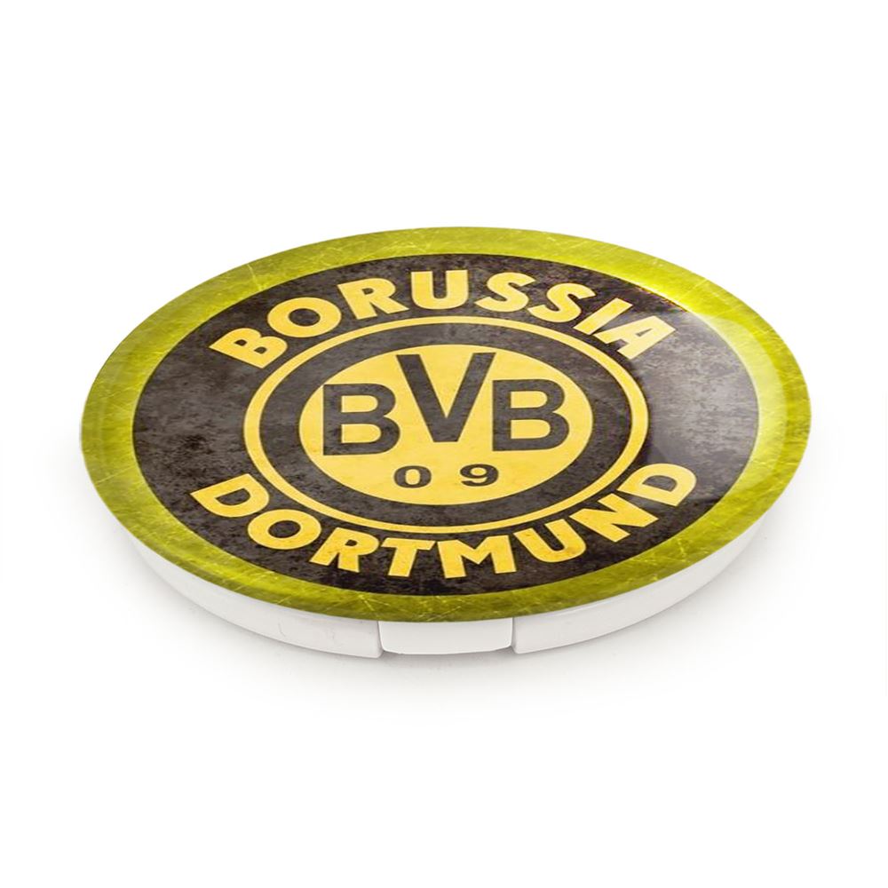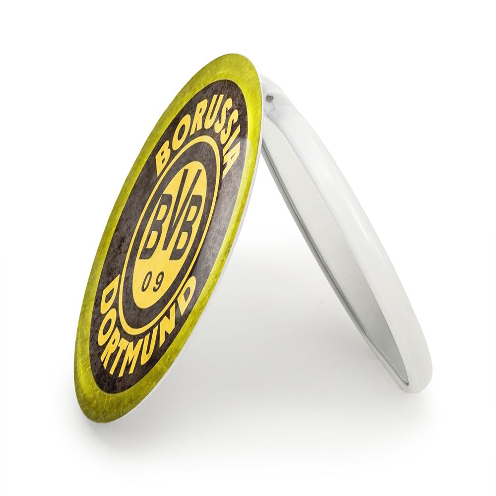 آینه های تاشو باشگاه بورسیا دورتموند Borussia Dortmund خندالو، از جنس پلاستیک فشرده ABS تولید شده و به رنگ سفید می باشد. یکی از آینه ها ابعاد واقعی را نشان داده و دیگری با قابلیت بزرگنمایی، جزئیات را بهتر نمایش می دهد. ابعاد هر یک از آینه ها، دایره ای به قطر 7.5 سانت می باشد که نه خیلی بزرگ و غیر قابل استفاده در کیف آرایشی ست و نه خیلی کوچک که تصویر خاصی در آن مشاهده نشود. آینه تاشو باشگاه بورسیا دورتموند Borussia Dortmund سایزی استاندارد و کارآمد دارد و در هر کیفی جا میگیرد. چاپ طرح بوسیله چاپگرهای دیجیتال شش رنگ با شفافیت و کیفیتی مثال زدنی بر روی یک وجه از بدنه ی آینه انجام گرفته و با روکش لمینت حرارتی پوشیده شده که در مقابل آسیب و خط و خش مقاوم بوده و کیفیت بالایی دارد. درب آینه بوسیله قفل بدنه ی آن، باز نمی ماند و کاملا بسته می شود و مناسب قرار گیری در کیف لوازم آرایش و کیف های کوچک دستی نیز هست. آینه های تاشو باشگاه بورسیا دورتموند Borussia Dortmund خندالو با تنوع طرحی بسیار بالا، سلیقه هر نوع مخاطبی را تامین میکند.