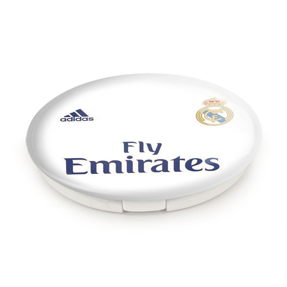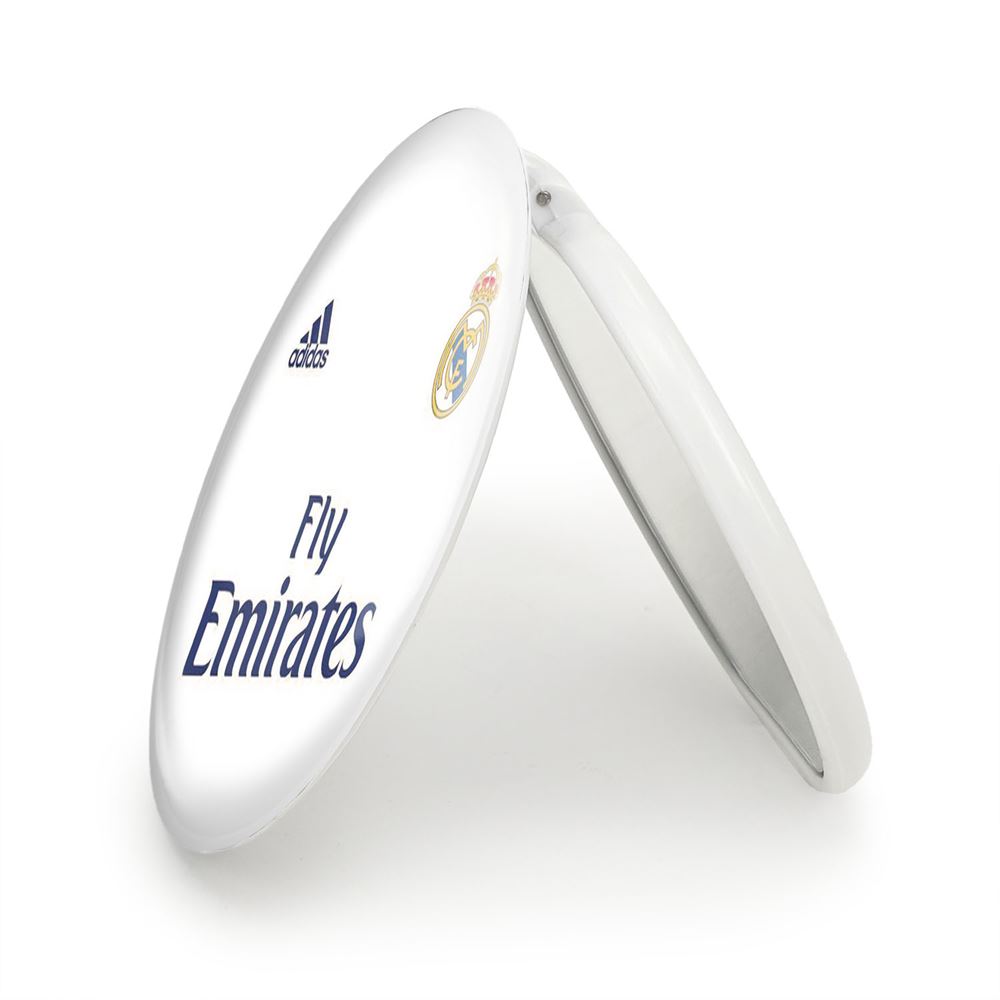 آینه های تاشو باشگاه رئال مادرید Real Madrid خندالو، از جنس پلاستیک فشرده ABS تولید شده و به رنگ سفید می باشد. یکی از آینه ها ابعاد واقعی را نشان داده و دیگری با قابلیت بزرگنمایی، جزئیات را بهتر نمایش می دهد.