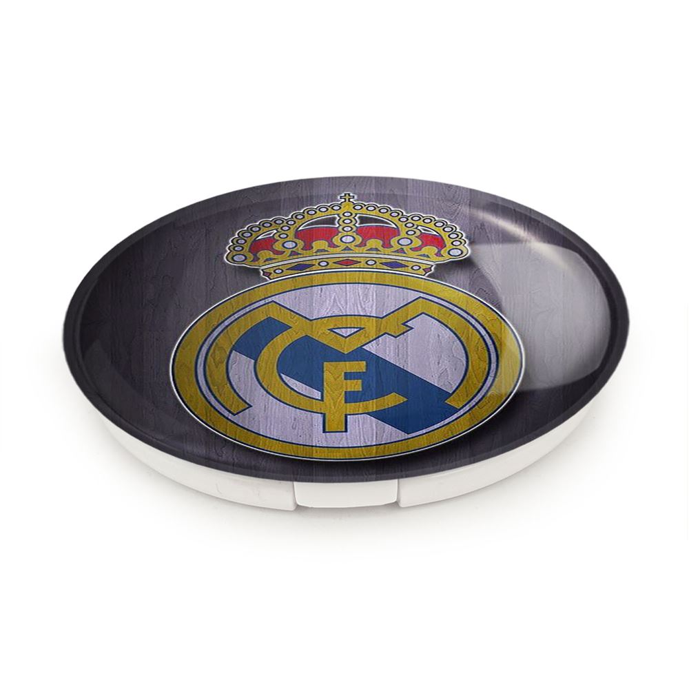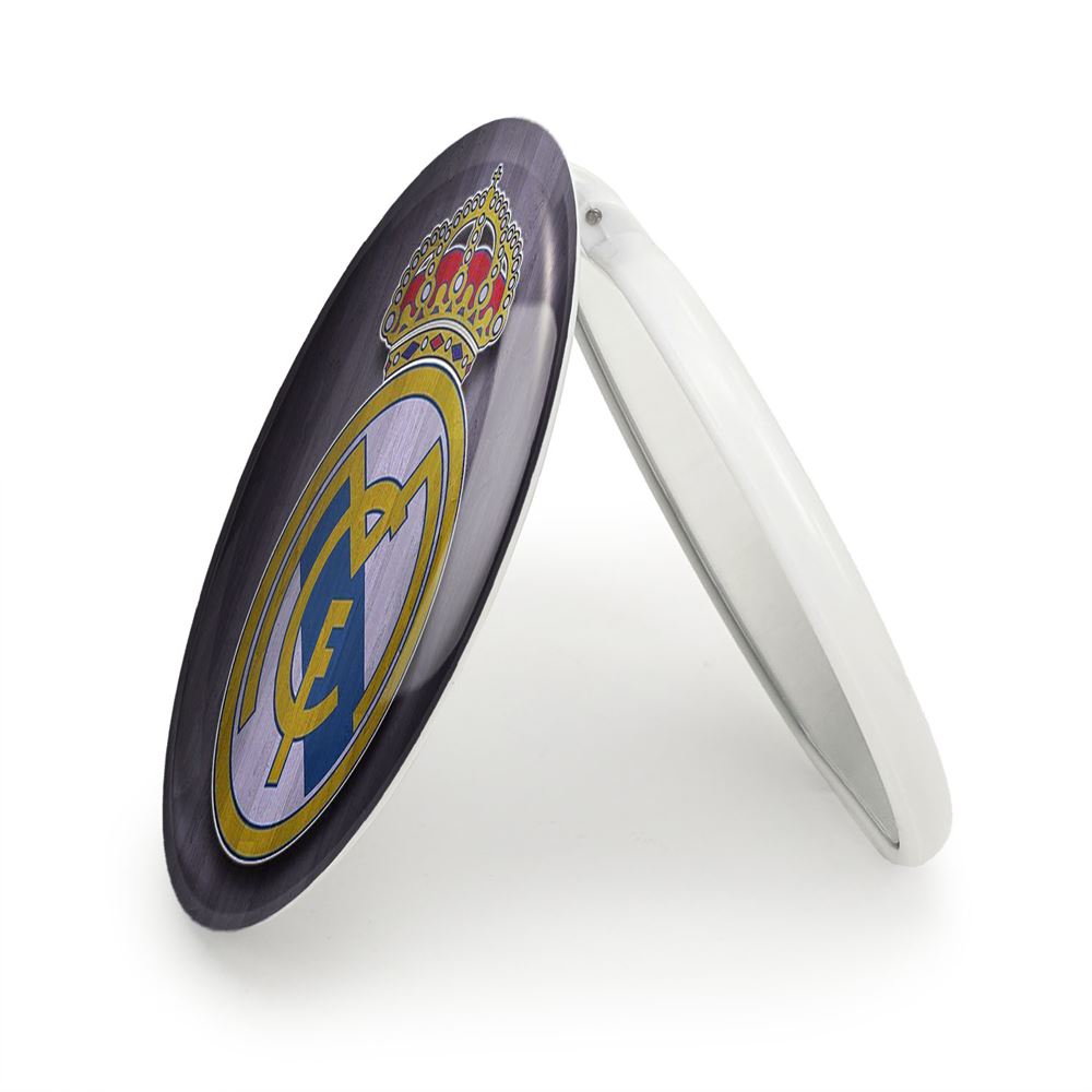 آینه های تاشو باشگاه رئال مادرید Real Madrid خندالو، از جنس پلاستیک فشرده ABS تولید شده و به رنگ سفید می باشد. یکی از آینه ها ابعاد واقعی را نشان داده و دیگری با قابلیت بزرگنمایی، جزئیات را بهتر نمایش می دهد.