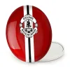 آینه های تاشو باشگاه منچستر یونایتد خندالو، از جنس پلاستیک فشرده ABS تولید شده و به رنگ سفید می باشد. یکی از آینه ها ابعاد واقعی را نشان داده و دیگری با قابلیت بزرگنمایی، جزئیات را بهتر نمایش می دهد. ابعاد هر یک از آینه ها، دایره ای به قطر 7.5 سانت می باشد که نه خیلی بزرگ و غیر قابل استفاده در کیف آرایشی ست و نه خیلی کوچک که تصویر خاصی در آن مشاهده نشود. آینه تاشو باشگاه منچستر یونایتد سایزی استاندارد و کارآمد دارد و در هر کیفی جا میگیرد. چاپ طرح بوسیله چاپگرهای دیجیتال شش رنگ با شفافیت و کیفیتی مثال زدنی بر روی یک وجه از بدنه ی آینه انجام گرفته و با روکش لمینت حرارتی پوشیده شده که در مقابل آسیب و خط و خش مقاوم بوده و کیفیت بالایی دارد. درب آینه بوسیله قفل بدنه ی آن، باز نمی ماند و کاملا بسته می شود و مناسب قرار گیری در کیف لوازم آرایش و کیف های کوچک دستی نیز هست. آینه های تاشو باشگاه منچستر یونایتد خندالو با تنوع طرحی بسیار بالا، سلیقه هر نوع مخاطبی را تامین میکند.