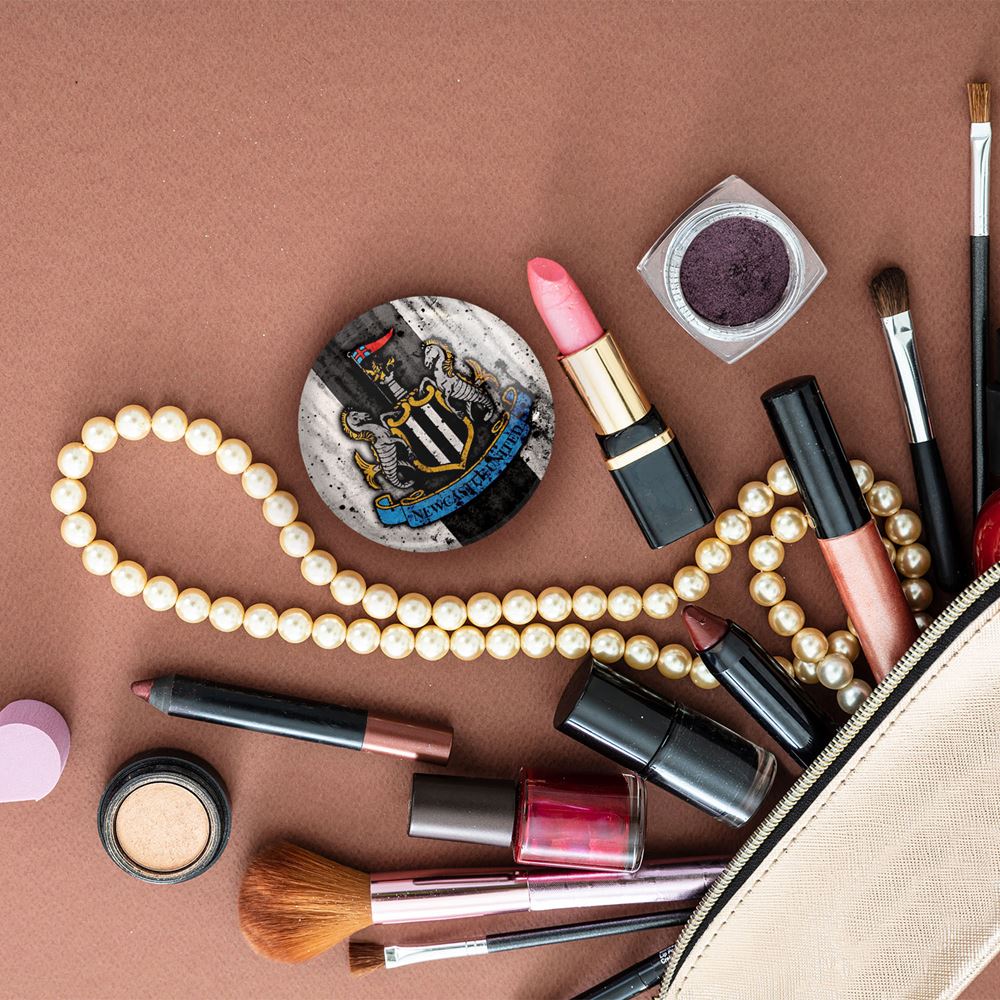 آینه های تاشو باشگاه نیوکاسل خندالو، از جنس پلاستیک فشرده ABS تولید شده و به رنگ سفید می باشد. یکی از آینه ها ابعاد واقعی را نشان داده و دیگری با قابلیت بزرگنمایی، جزئیات را بهتر نمایش می دهد. ابعاد هر یک از آینه ها، دایره ای به قطر 7.5 سانت می باشد که نه خیلی بزرگ و غیر قابل استفاده در کیف آرایشی ست و نه خیلی کوچک که تصویر خاصی در آن مشاهده نشود. آینه تاشو باشگاه نیوکاسل سایزی استاندارد و کارآمد دارد و در هر کیفی جا میگیرد. چاپ طرح بوسیله چاپگرهای دیجیتال شش رنگ با شفافیت و کیفیتی مثال زدنی بر روی یک وجه از بدنه ی آینه انجام گرفته و با روکش لمینت حرارتی پوشیده شده که در مقابل آسیب و خط و خش مقاوم بوده و کیفیت بالایی دارد. درب آینه بوسیله قفل بدنه ی آن، باز نمی ماند و کاملا بسته می شود و مناسب قرار گیری در کیف لوازم آرایش و کیف های کوچک دستی نیز هست. آینه های تاشو باشگاه نیوکاسل خندالو با تنوع طرحی بسیار بالا، سلیقه هر نوع مخاطبی را تامین میکند.
