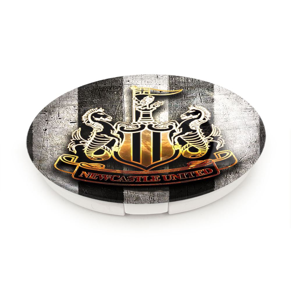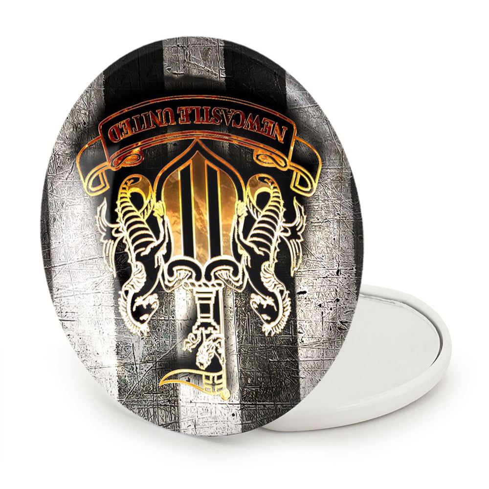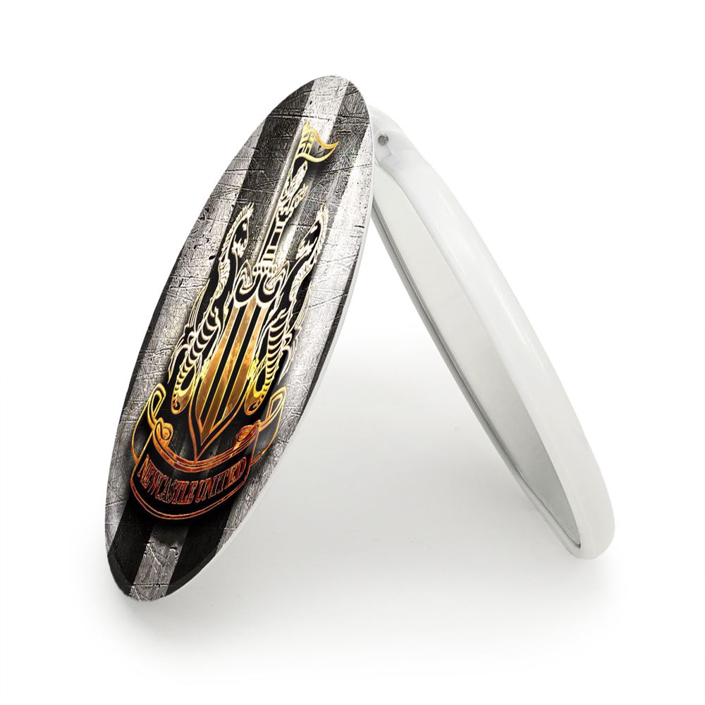 آینه های تاشو باشگاه نیوکاسل خندالو، از جنس پلاستیک فشرده ABS تولید شده و به رنگ سفید می باشد. یکی از آینه ها ابعاد واقعی را نشان داده و دیگری با قابلیت بزرگنمایی، جزئیات را بهتر نمایش می دهد. ابعاد هر یک از آینه ها، دایره ای به قطر 7.5 سانت می باشد که نه خیلی بزرگ و غیر قابل استفاده در کیف آرایشی ست و نه خیلی کوچک که تصویر خاصی در آن مشاهده نشود. آینه تاشو باشگاه نیوکاسل سایزی استاندارد و کارآمد دارد و در هر کیفی جا میگیرد. چاپ طرح بوسیله چاپگرهای دیجیتال شش رنگ با شفافیت و کیفیتی مثال زدنی بر روی یک وجه از بدنه ی آینه انجام گرفته و با روکش لمینت حرارتی پوشیده شده که در مقابل آسیب و خط و خش مقاوم بوده و کیفیت بالایی دارد. درب آینه بوسیله قفل بدنه ی آن، باز نمی ماند و کاملا بسته می شود و مناسب قرار گیری در کیف لوازم آرایش و کیف های کوچک دستی نیز هست. آینه های تاشو باشگاه نیوکاسل خندالو با تنوع طرحی بسیار بالا، سلیقه هر نوع مخاطبی را تامین میکند.
