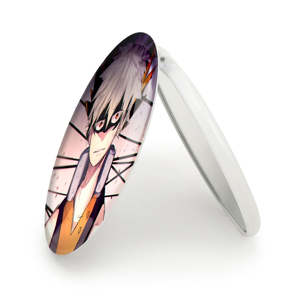 آینه های تاشو باکوگو انیمه آکادمی قهرمان من خندالو، از جنس پلاستیک فشرده ABS تولید شده و به رنگ سفید می باشد. یکی از آینه ها ابعاد واقعی را نشان داده و دیگری با قابلیت بزرگنمایی، جزئیات را بهتر نمایش می دهد. ابعاد هر یک از آینه ها، دایره ای به قطر 7.5 سانت می باشد که نه خیلی بزرگ و غیر قابل استفاده در کیف آرایشی ست و نه خیلی کوچک که تصویر خاصی در آن مشاهده نشود. آینه تاشو باکوگو انیمه آکادمی قهرمان من سایزی استاندارد و کارآمد دارد و در هر کیفی جا میگیرد. چاپ طرح بوسیله چاپگرهای دیجیتال شش رنگ با شفافیت و کیفیتی مثال زدنی بر روی یک وجه از بدنه ی آینه انجام گرفته و با روکش لمینت حرارتی پوشیده شده که در مقابل آسیب و خط و خش مقاوم بوده و کیفیت بالایی دارد. درب آینه بوسیله قفل بدنه ی آن، باز نمی ماند و کاملا بسته می شود و مناسب قرار گیری در کیف لوازم آرایش و کیف های کوچک دستی نیز هست. آینه های تاشو باکوگو انیمه آکادمی قهرمان من خندالو با تنوع طرحی بسیار بالا، سلیقه هر نوع مخاطبی را تامین میکند.