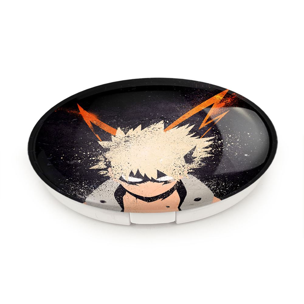 آینه های تاشو باکوگو انیمه آکادمی قهرمان من خندالو، از جنس پلاستیک فشرده ABS تولید شده و به رنگ سفید می باشد. یکی از آینه ها ابعاد واقعی را نشان داده و دیگری با قابلیت بزرگنمایی، جزئیات را بهتر نمایش می دهد. ابعاد هر یک از آینه ها، دایره ای به قطر 7.5 سانت می باشد که نه خیلی بزرگ و غیر قابل استفاده در کیف آرایشی ست و نه خیلی کوچک که تصویر خاصی در آن مشاهده نشود. آینه تاشو باکوگو انیمه آکادمی قهرمان من سایزی استاندارد و کارآمد دارد و در هر کیفی جا میگیرد. چاپ طرح بوسیله چاپگرهای دیجیتال شش رنگ با شفافیت و کیفیتی مثال زدنی بر روی یک وجه از بدنه ی آینه انجام گرفته و با روکش لمینت حرارتی پوشیده شده که در مقابل آسیب و خط و خش مقاوم بوده و کیفیت بالایی دارد. درب آینه بوسیله قفل بدنه ی آن، باز نمی ماند و کاملا بسته می شود و مناسب قرار گیری در کیف لوازم آرایش و کیف های کوچک دستی نیز هست. آینه های تاشو باکوگو انیمه آکادمی قهرمان من خندالو با تنوع طرحی بسیار بالا، سلیقه هر نوع مخاطبی را تامین میکند.