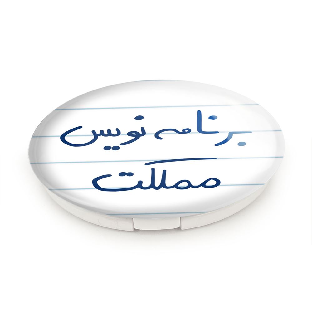 آینه های تاشو برنامه نویس مملکت خندالو، از جنس پلاستیک فشرده ABS تولید شده و به رنگ سفید می باشد. یکی از آینه ها ابعاد واقعی را نشان داده و دیگری با قابلیت بزرگنمایی، جزئیات را بهتر نمایش می دهد. ابعاد هر یک از آینه ها، دایره ای به قطر 7.5 سانت می باشد که نه خیلی بزرگ و غیر قابل استفاده در کیف آرایشی ست و نه خیلی کوچک که تصویر خاصی در آن مشاهده نشود. آینه تاشو برنامه نویس مملکت سایزی استاندارد و کارآمد دارد و در هر کیفی جا میگیرد. چاپ طرح بوسیله چاپگرهای دیجیتال شش رنگ با شفافیت و کیفیتی مثال زدنی بر روی یک وجه از بدنه ی آینه انجام گرفته و با روکش لمینت حرارتی پوشیده شده که در مقابل آسیب و خط و خش مقاوم بوده و کیفیت بالایی دارد. درب آینه بوسیله قفل بدنه ی آن، باز نمی ماند و کاملا بسته می شود و مناسب قرار گیری در کیف لوازم آرایش و کیف های کوچک دستی نیز هست. آینه های تاشو برنامه نویس مملکت خندالو با تنوع طرحی بسیار بالا، سلیقه هر نوع مخاطبی را تامین میکند.