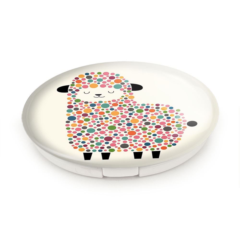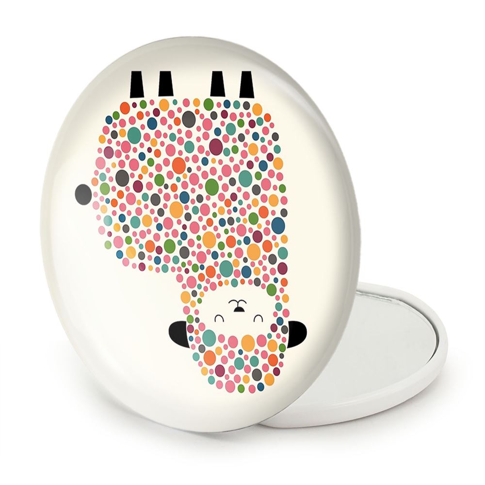 آینه های تاشو بره کوچولو خندالو، از جنس پلاستیک فشرده ABS تولید شده و به رنگ سفید می باشد. یکی از آینه ها ابعاد واقعی را نشان داده و دیگری با قابلیت بزرگنمایی، جزئیات را بهتر نمایش می دهد. ابعاد هر یک از آینه ها، دایره ای به قطر 7.5 سانت می باشد که نه خیلی بزرگ و غیر قابل استفاده در کیف آرایشی ست و نه خیلی کوچک که تصویر خاصی در آن مشاهده نشود. آینه تاشو بره کوچولو سایزی استاندارد و کارآمد دارد و در هر کیفی جا میگیرد. چاپ طرح بوسیله چاپگرهای دیجیتال شش رنگ با شفافیت و کیفیتی مثال زدنی بر روی یک وجه از بدنه ی آینه انجام گرفته و با روکش لمینت حرارتی پوشیده شده که در مقابل آسیب و خط و خش مقاوم بوده و کیفیت بالایی دارد. درب آینه بوسیله قفل بدنه ی آن، باز نمی ماند و کاملا بسته می شود و مناسب قرار گیری در کیف لوازم آرایش و کیف های کوچک دستی نیز هست. آینه های تاشو بره کوچولو خندالو با تنوع طرحی بسیار بالا، سلیقه هر نوع مخاطبی را تامین میکند.