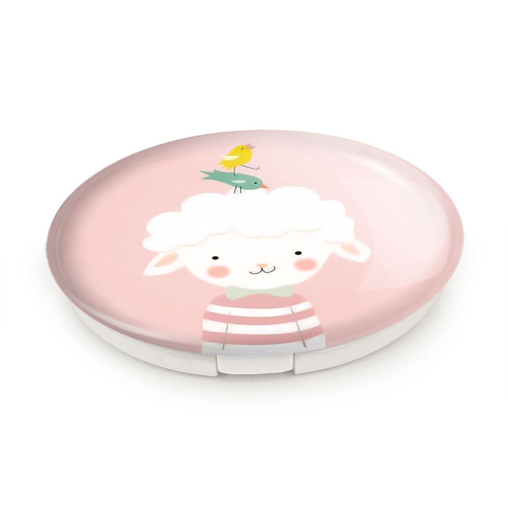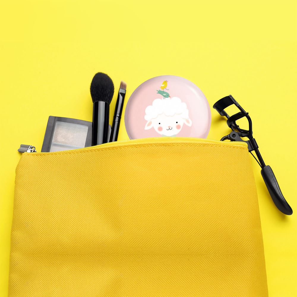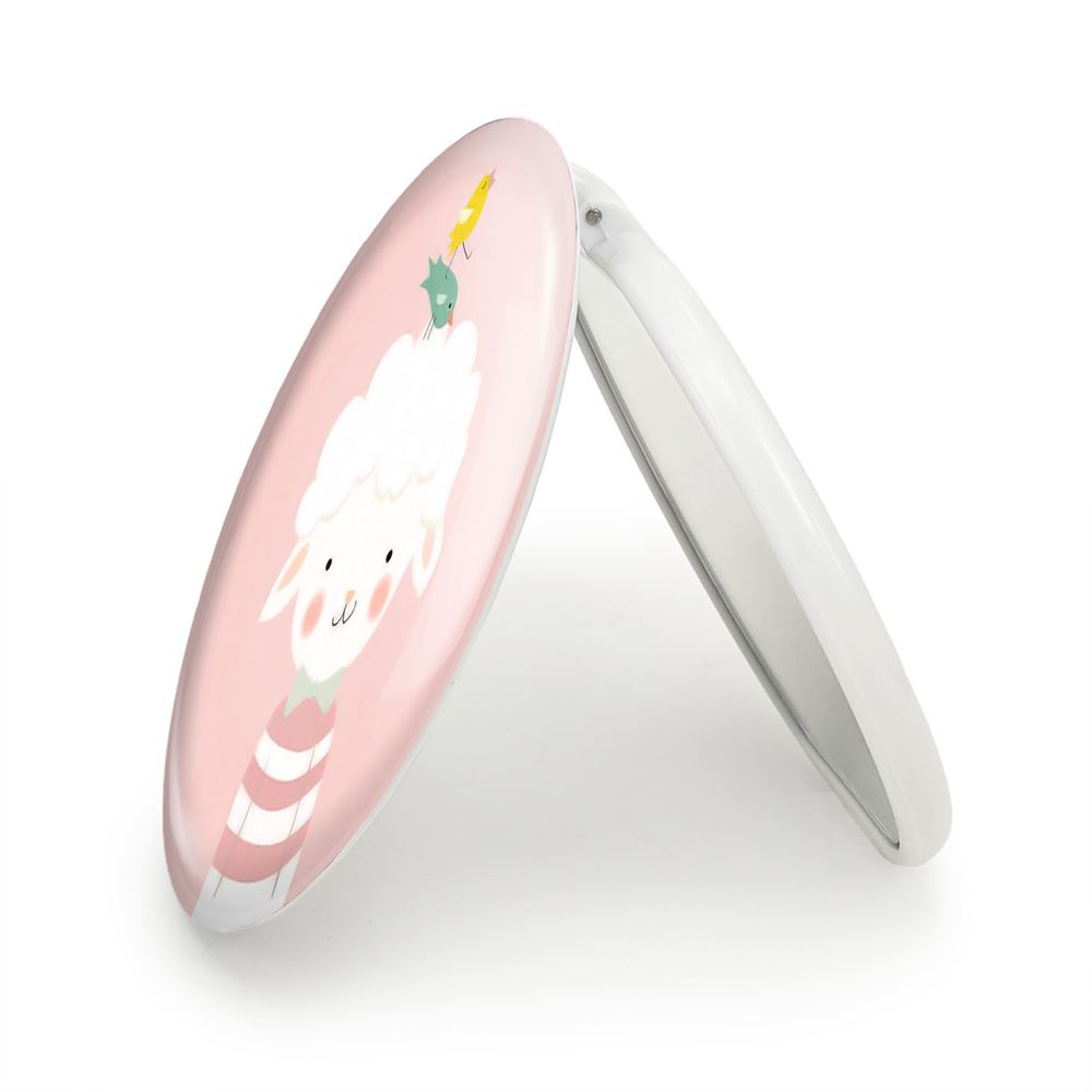 آینه های تاشو بره کوچولو خندالو، از جنس پلاستیک فشرده ABS تولید شده و به رنگ سفید می باشد. یکی از آینه ها ابعاد واقعی را نشان داده و دیگری با قابلیت بزرگنمایی، جزئیات را بهتر نمایش می دهد. ابعاد هر یک از آینه ها، دایره ای به قطر 7.5 سانت می باشد که نه خیلی بزرگ و غیر قابل استفاده در کیف آرایشی ست و نه خیلی کوچک که تصویر خاصی در آن مشاهده نشود. آینه تاشو بره کوچولو سایزی استاندارد و کارآمد دارد و در هر کیفی جا میگیرد. چاپ طرح بوسیله چاپگرهای دیجیتال شش رنگ با شفافیت و کیفیتی مثال زدنی بر روی یک وجه از بدنه ی آینه انجام گرفته و با روکش لمینت حرارتی پوشیده شده که در مقابل آسیب و خط و خش مقاوم بوده و کیفیت بالایی دارد. درب آینه بوسیله قفل بدنه ی آن، باز نمی ماند و کاملا بسته می شود و مناسب قرار گیری در کیف لوازم آرایش و کیف های کوچک دستی نیز هست. آینه های تاشو بره کوچولو خندالو با تنوع طرحی بسیار بالا، سلیقه هر نوع مخاطبی را تامین میکند.