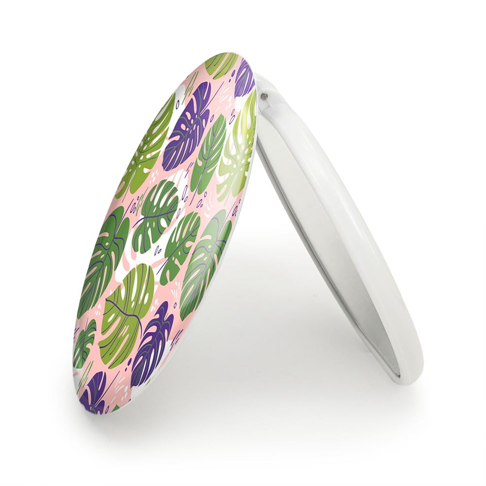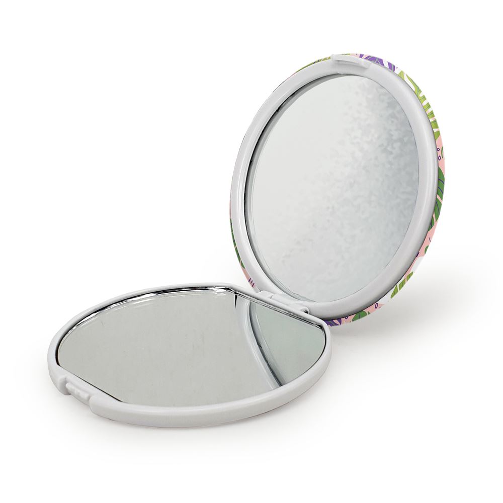 آینه های تاشو برگ انجیری خندالو، از جنس پلاستیک فشرده ABS تولید شده و به رنگ سفید می باشد. یکی از آینه ها ابعاد واقعی را نشان داده و دیگری با قابلیت بزرگنمایی، جزئیات را بهتر نمایش می دهد. ابعاد هر یک از آینه ها، دایره ای به قطر 7.5 سانت می باشد که نه خیلی بزرگ و غیر قابل استفاده در کیف آرایشی ست و نه خیلی کوچک که تصویر خاصی در آن مشاهده نشود. آینه تاشو برگ انجیری سایزی استاندارد و کارآمد دارد و در هر کیفی جا میگیرد. چاپ طرح بوسیله چاپگرهای دیجیتال شش رنگ با شفافیت و کیفیتی مثال زدنی بر روی یک وجه از بدنه ی آینه انجام گرفته و با روکش لمینت حرارتی پوشیده شده که در مقابل آسیب و خط و خش مقاوم بوده و کیفیت بالایی دارد. درب آینه بوسیله قفل بدنه ی آن، باز نمی ماند و کاملا بسته می شود و مناسب قرار گیری در کیف لوازم آرایش و کیف های کوچک دستی نیز هست. آینه های تاشو برگ انجیری خندالو با تنوع طرحی بسیار بالا، سلیقه هر نوع مخاطبی را تامین میکند.