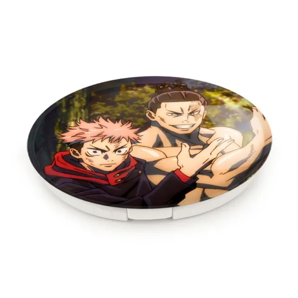 آینه های تاشو بستو فرندو انیمه جوجوتسو کایزن خندالو، از جنس پلاستیک فشرده ABS تولید شده و به رنگ سفید می باشد. یکی از آینه ها ابعاد واقعی را نشان داده و دیگری با قابلیت بزرگنمایی، جزئیات را بهتر نمایش می دهد. ابعاد هر یک از آینه ها، دایره ای به قطر 7.5 سانت می باشد که نه خیلی بزرگ و غیر قابل استفاده در کیف آرایشی ست و نه خیلی کوچک که تصویر خاصی در آن مشاهده نشود. آینه تاشو بستو فرندو انیمه جوجوتسو کایزن سایزی استاندارد و کارآمد دارد و در هر کیفی جا میگیرد. چاپ طرح بوسیله چاپگرهای دیجیتال شش رنگ با شفافیت و کیفیتی مثال زدنی بر روی یک وجه از بدنه ی آینه انجام گرفته و با روکش لمینت حرارتی پوشیده شده که در مقابل آسیب و خط و خش مقاوم بوده و کیفیت بالایی دارد. درب آینه بوسیله قفل بدنه ی آن، باز نمی ماند و کاملا بسته می شود و مناسب قرار گیری در کیف لوازم آرایش و کیف های کوچک دستی نیز هست. آینه های تاشو بستو فرندو انیمه جوجوتسو کایزن خندالو با تنوع طرحی بسیار بالا، سلیقه هر نوع مخاطبی را تامین میکند.