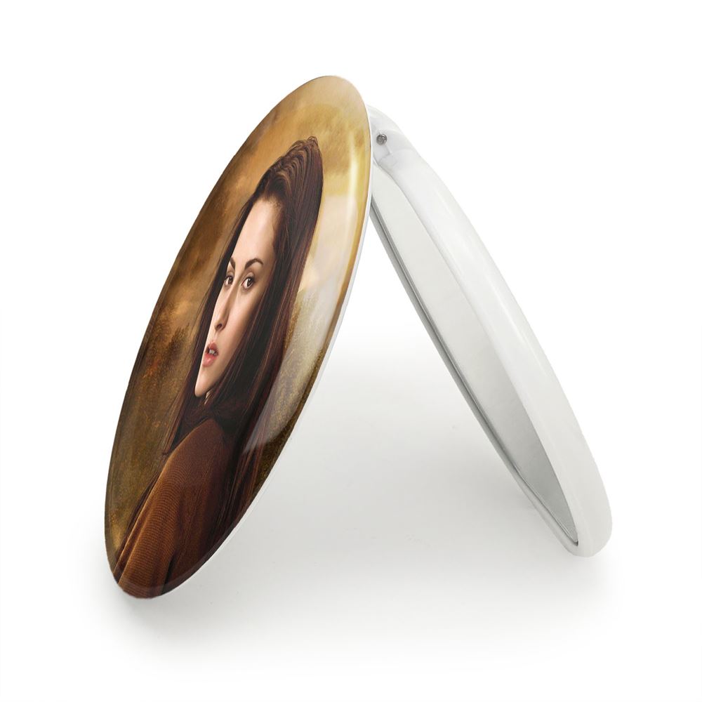 آینه های تاشو بلا سوان گرگ و میش Twilight خندالو، از جنس پلاستیک فشرده ABS تولید شده و به رنگ سفید می باشد. یکی از آینه ها ابعاد واقعی را نشان داده و دیگری با قابلیت بزرگنمایی، جزئیات را بهتر نمایش می دهد. ابعاد هر یک از آینه ها، دایره ای به قطر 7.5 سانت می باشد که نه خیلی بزرگ و غیر قابل استفاده در کیف آرایشی ست و نه خیلی کوچک که تصویر خاصی در آن مشاهده نشود. آینه تاشو بلا سوان گرگ و میش Twilight سایزی استاندارد و کارآمد دارد و در هر کیفی جا میگیرد. چاپ طرح بوسیله چاپگرهای دیجیتال شش رنگ با شفافیت و کیفیتی مثال زدنی بر روی یک وجه از بدنه ی آینه انجام گرفته و با روکش لمینت حرارتی پوشیده شده که در مقابل آسیب و خط و خش مقاوم بوده و کیفیت بالایی دارد. درب آینه بوسیله قفل بدنه ی آن، باز نمی ماند و کاملا بسته می شود و مناسب قرار گیری در کیف لوازم آرایش و کیف های کوچک دستی نیز هست. آینه های تاشو بلا سوان گرگ و میش Twilight خندالو با تنوع طرحی بسیار بالا، سلیقه هر نوع مخاطبی را تامین میکند.