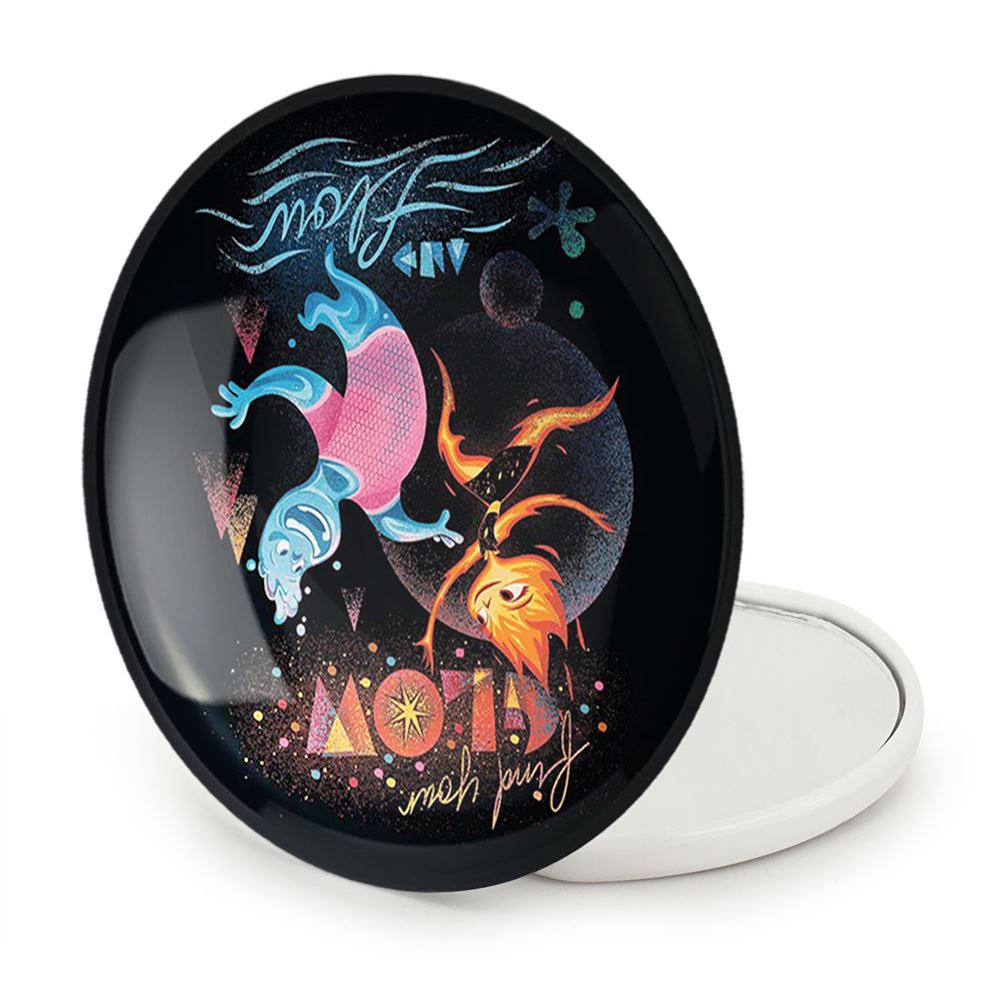 آینه های تاشو بنیادین Elemental خندالو، از جنس پلاستیک فشرده ABS تولید شده و به رنگ سفید می باشد. یکی از آینه ها ابعاد واقعی را نشان داده و دیگری با قابلیت بزرگنمایی، جزئیات را بهتر نمایش می دهد. ابعاد هر یک از آینه ها، دایره ای به قطر 7.5 سانت می باشد که نه خیلی بزرگ و غیر قابل استفاده در کیف آرایشی ست و نه خیلی کوچک که تصویر خاصی در آن مشاهده نشود. آینه تاشو بنیادین Elemental سایزی استاندارد و کارآمد دارد و در هر کیفی جا میگیرد. چاپ طرح بوسیله چاپگرهای دیجیتال شش رنگ با شفافیت و کیفیتی مثال زدنی بر روی یک وجه از بدنه ی آینه انجام گرفته و با روکش لمینت حرارتی پوشیده شده که در مقابل آسیب و خط و خش مقاوم بوده و کیفیت بالایی دارد. درب آینه بوسیله قفل بدنه ی آن، باز نمی ماند و کاملا بسته می شود و مناسب قرار گیری در کیف لوازم آرایش و کیف های کوچک دستی نیز هست. آینه های تاشو بنیادین Elemental خندالو با تنوع طرحی بسیار بالا، سلیقه هر نوع مخاطبی را تامین میکند.