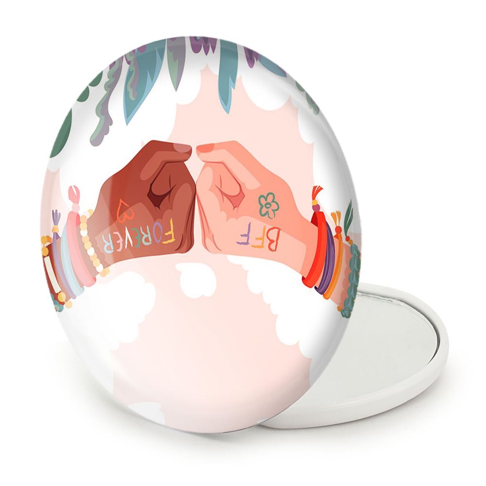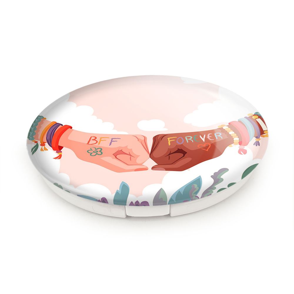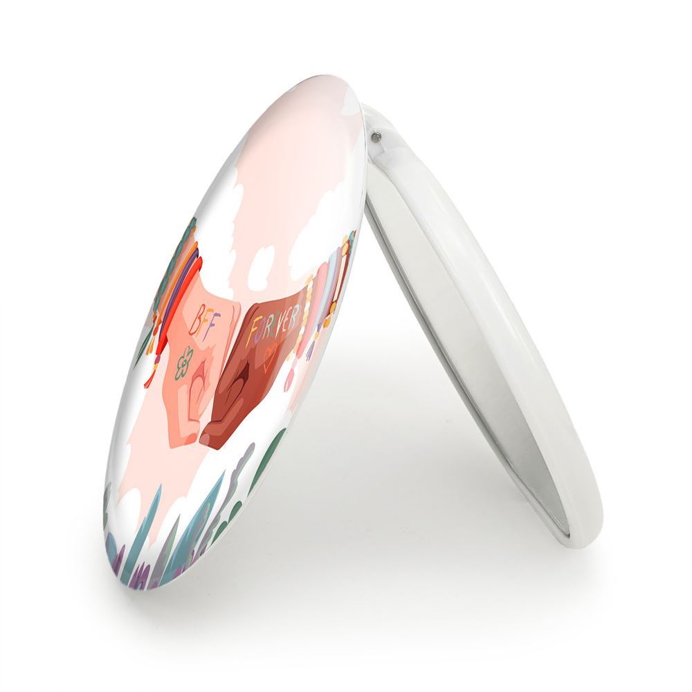 آینه های تاشو بهترین دوستان Best Friends خندالو، از جنس پلاستیک فشرده ABS تولید شده و به رنگ سفید می باشد. یکی از آینه ها ابعاد واقعی را نشان داده و دیگری با قابلیت بزرگنمایی، جزئیات را بهتر نمایش می دهد.