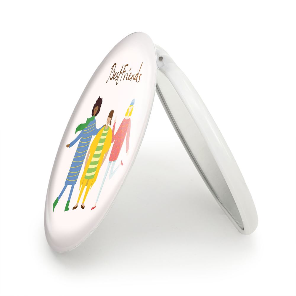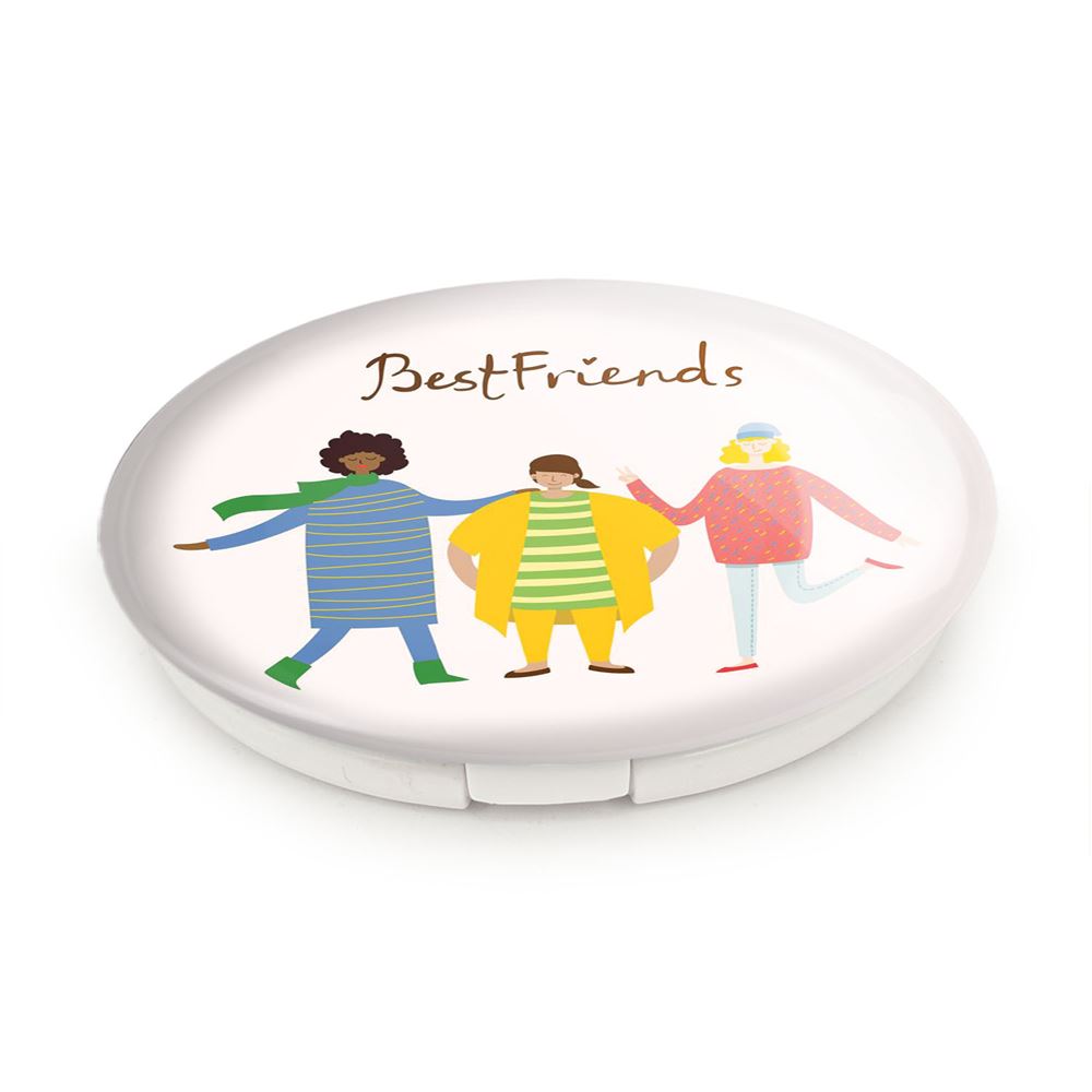 آینه های تاشو بهترین دوستان Best Friends خندالو، از جنس پلاستیک فشرده ABS تولید شده و به رنگ سفید می باشد. یکی از آینه ها ابعاد واقعی را نشان داده و دیگری با قابلیت بزرگنمایی، جزئیات را بهتر نمایش می دهد.