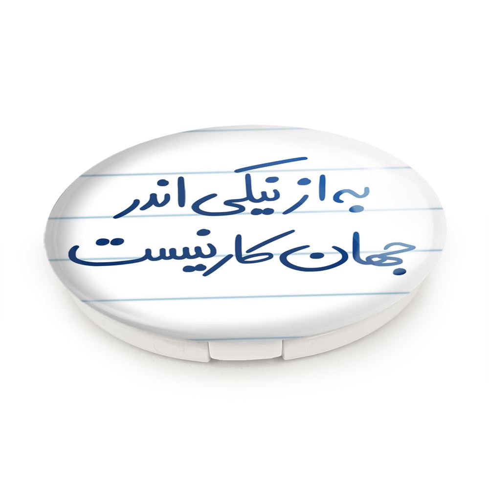 آینه های تاشو به از نیکی اندر جهان کار نیست خندالو، از جنس پلاستیک فشرده ABS تولید شده و به رنگ سفید می باشد. یکی از آینه ها ابعاد واقعی را نشان داده و دیگری با قابلیت بزرگنمایی، جزئیات را بهتر نمایش می دهد. ابعاد هر یک از آینه ها، دایره ای به قطر 7.5 سانت می باشد که نه خیلی بزرگ و غیر قابل استفاده در کیف آرایشی ست و نه خیلی کوچک که تصویر خاصی در آن مشاهده نشود. آینه تاشو به از نیکی اندر جهان کار نیست سایزی استاندارد و کارآمد دارد و در هر کیفی جا میگیرد. چاپ طرح بوسیله چاپگرهای دیجیتال شش رنگ با شفافیت و کیفیتی مثال زدنی بر روی یک وجه از بدنه ی آینه انجام گرفته و با روکش لمینت حرارتی پوشیده شده که در مقابل آسیب و خط و خش مقاوم بوده و کیفیت بالایی دارد. درب آینه بوسیله قفل بدنه ی آن، باز نمی ماند و کاملا بسته می شود و مناسب قرار گیری در کیف لوازم آرایش و کیف های کوچک دستی نیز هست. آینه های تاشو به از نیکی اندر جهان کار نیست خندالو با تنوع طرحی بسیار بالا، سلیقه هر نوع مخاطبی را تامین میکند.
