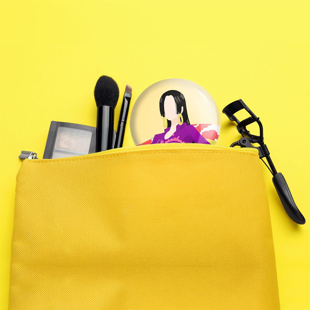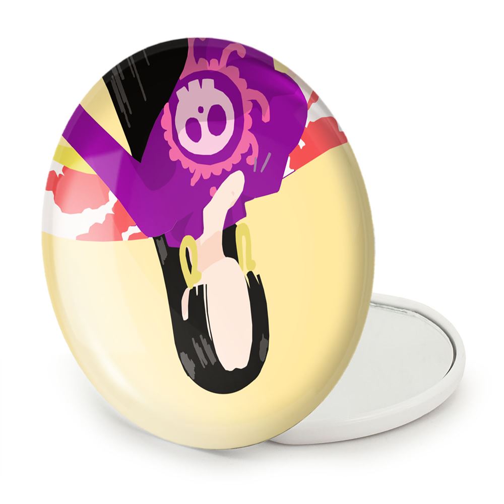 آینه های تاشو بوا هنکوک انیمه وان پیس One Piece خندالو، از جنس پلاستیک فشرده ABS تولید شده و به رنگ سفید می باشد. یکی از آینه ها ابعاد واقعی را نشان داده و دیگری با قابلیت بزرگنمایی، جزئیات را بهتر نمایش می دهد. ابعاد هر یک از آینه ها، دایره ای به قطر 7.5 سانت می باشد که نه خیلی بزرگ و غیر قابل استفاده در کیف آرایشی ست و نه خیلی کوچک که تصویر خاصی در آن مشاهده نشود. آینه تاشو بوا هنکوک انیمه وان پیس One Piece سایزی استاندارد و کارآمد دارد و در هر کیفی جا میگیرد. چاپ طرح بوسیله چاپگرهای دیجیتال شش رنگ با شفافیت و کیفیتی مثال زدنی بر روی یک وجه از بدنه ی آینه انجام گرفته و با روکش لمینت حرارتی پوشیده شده که در مقابل آسیب و خط و خش مقاوم بوده و کیفیت بالایی دارد. درب آینه بوسیله قفل بدنه ی آن، باز نمی ماند و کاملا بسته می شود و مناسب قرار گیری در کیف لوازم آرایش و کیف های کوچک دستی نیز هست. آینه های تاشو بوا هنکوک انیمه وان پیس One Piece خندالو با تنوع طرحی بسیار بالا، سلیقه هر نوع مخاطبی را تامین میکند.