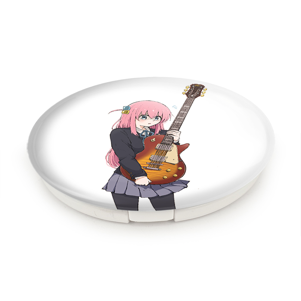 آینه های تاشو بوچی انیمه كي اون خندالو، از جنس پلاستیک فشرده ABS تولید شده و به رنگ سفید می باشد. یکی از آینه ها ابعاد واقعی را نشان داده و دیگری با قابلیت بزرگنمایی، جزئیات را بهتر نمایش می دهد. ابعاد هر یک از آینه ها، دایره ای به قطر 7.5 سانت می باشد که نه خیلی بزرگ و غیر قابل استفاده در کیف آرایشی ست و نه خیلی کوچک که تصویر خاصی در آن مشاهده نشود. آینه تاشو بوچی انیمه كي اون سایزی استاندارد و کارآمد دارد و در هر کیفی جا میگیرد. چاپ طرح بوسیله چاپگرهای دیجیتال شش رنگ با شفافیت و کیفیتی مثال زدنی بر روی یک وجه از بدنه ی آینه انجام گرفته و با روکش لمینت حرارتی پوشیده شده که در مقابل آسیب و خط و خش مقاوم بوده و کیفیت بالایی دارد. درب آینه بوسیله قفل بدنه ی آن، باز نمی ماند و کاملا بسته می شود و مناسب قرار گیری در کیف لوازم آرایش و کیف های کوچک دستی نیز هست. آینه های تاشو بوچی انیمه كي اون خندالو با تنوع طرحی بسیار بالا، سلیقه هر نوع مخاطبی را تامین میکند.