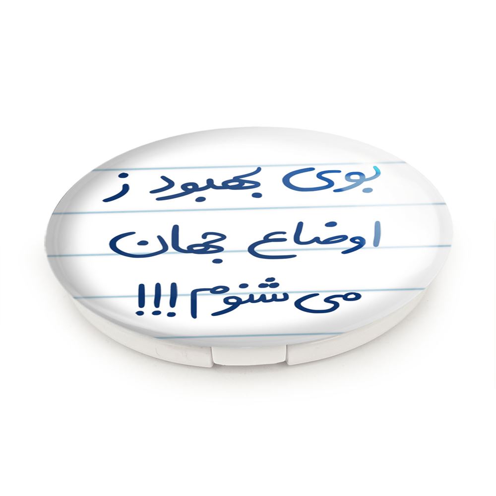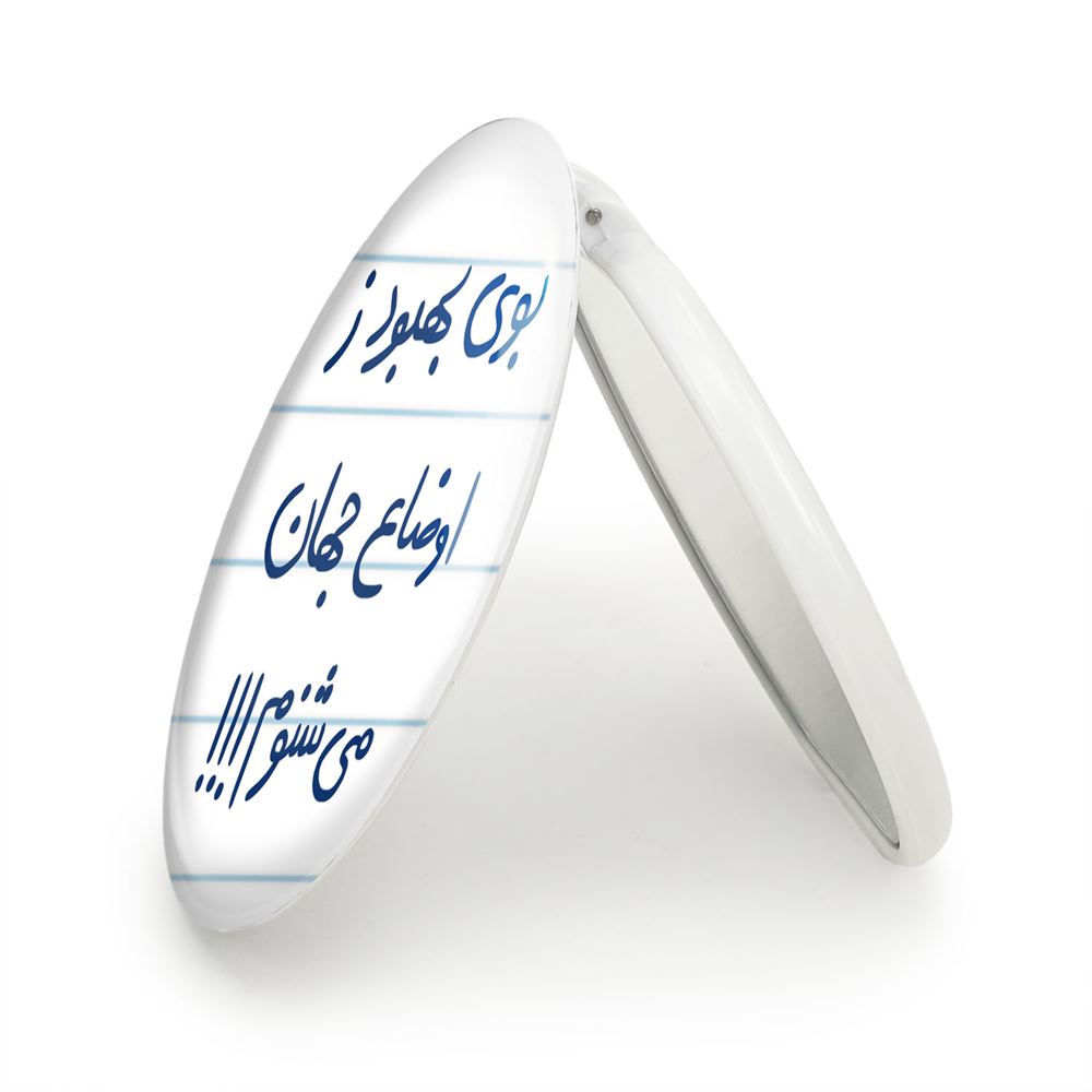 آینه های تاشو بوی بهبود ز اوضاع جهان می شنوم خندالو، از جنس پلاستیک فشرده ABS تولید شده و به رنگ سفید می باشد. یکی از آینه ها ابعاد واقعی را نشان داده و دیگری با قابلیت بزرگنمایی، جزئیات را بهتر نمایش می دهد. ابعاد هر یک از آینه ها، دایره ای به قطر 7.5 سانت می باشد که نه خیلی بزرگ و غیر قابل استفاده در کیف آرایشی ست و نه خیلی کوچک که تصویر خاصی در آن مشاهده نشود. آینه تاشو بوی بهبود ز اوضاع جهان می شنوم سایزی استاندارد و کارآمد دارد و در هر کیفی جا میگیرد. چاپ طرح بوسیله چاپگرهای دیجیتال شش رنگ با شفافیت و کیفیتی مثال زدنی بر روی یک وجه از بدنه ی آینه انجام گرفته و با روکش لمینت حرارتی پوشیده شده که در مقابل آسیب و خط و خش مقاوم بوده و کیفیت بالایی دارد. درب آینه بوسیله قفل بدنه ی آن، باز نمی ماند و کاملا بسته می شود و مناسب قرار گیری در کیف لوازم آرایش و کیف های کوچک دستی نیز هست. آینه های تاشو بوی بهبود ز اوضاع جهان می شنوم خندالو با تنوع طرحی بسیار بالا، سلیقه هر نوع مخاطبی را تامین میکند.