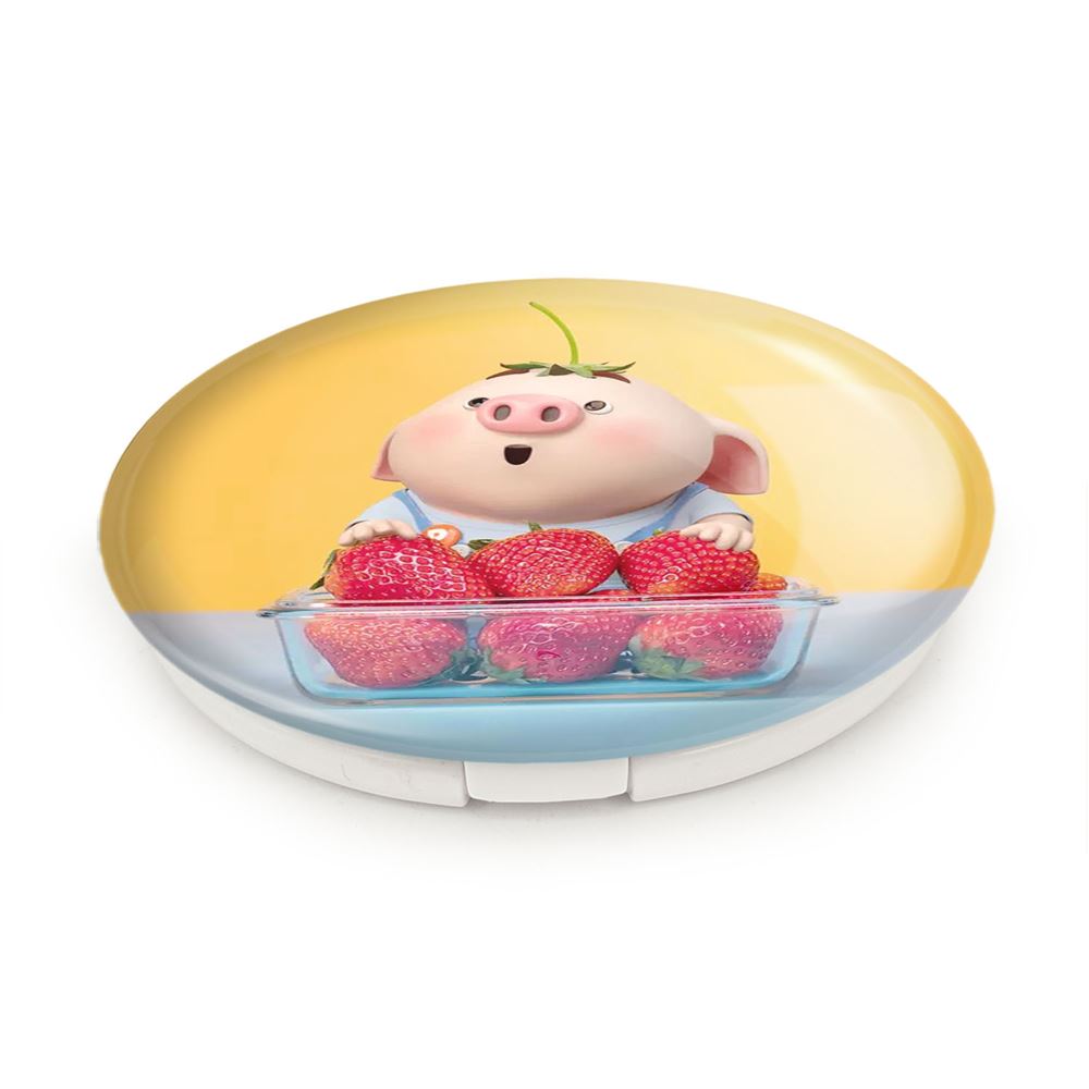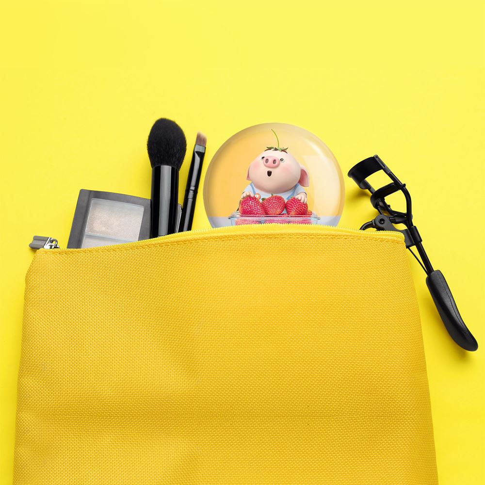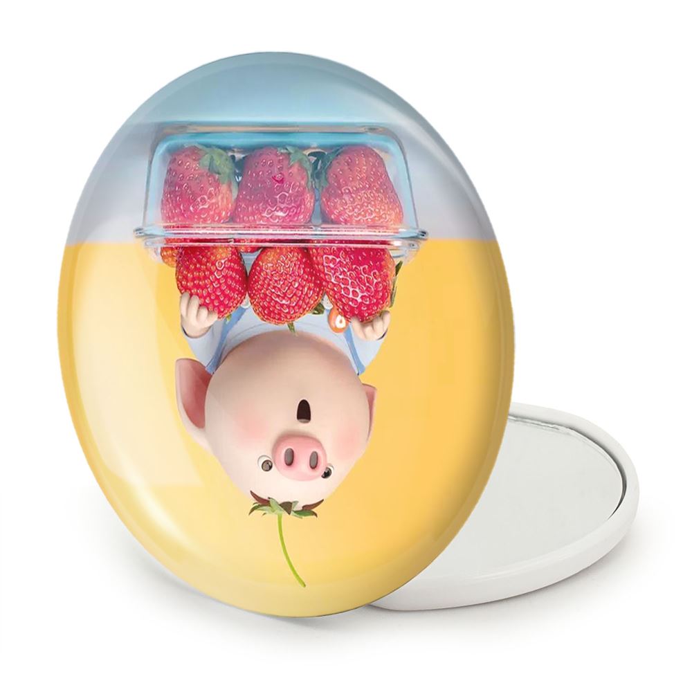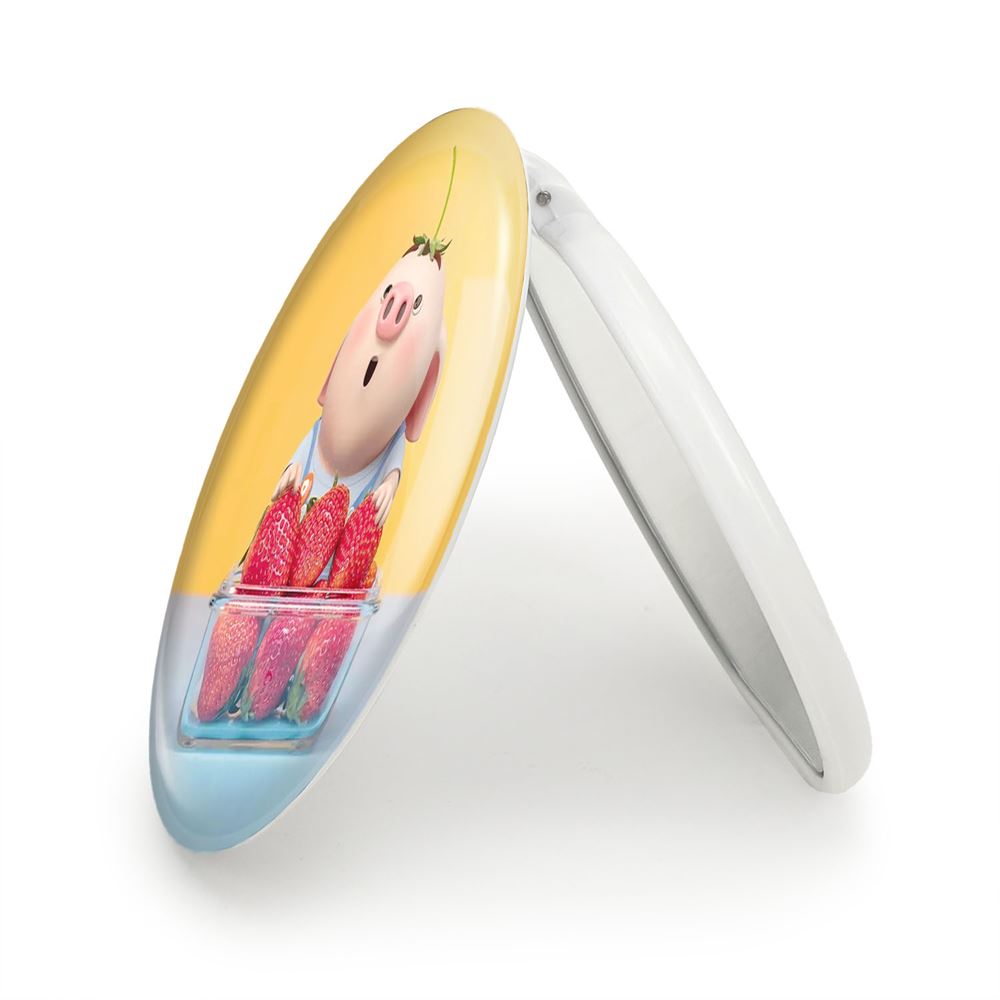 آینه های تاشو بچه خوک خندالو، از جنس پلاستیک فشرده ABS تولید شده و به رنگ سفید می باشد. یکی از آینه ها ابعاد واقعی را نشان داده و دیگری با قابلیت بزرگنمایی، جزئیات را بهتر نمایش می دهد. ابعاد هر یک از آینه ها، دایره ای به قطر 7.5 سانت می باشد که نه خیلی بزرگ و غیر قابل استفاده در کیف آرایشی ست و نه خیلی کوچک که تصویر خاصی در آن مشاهده نشود. آینه تاشو بچه خوک سایزی استاندارد و کارآمد دارد و در هر کیفی جا میگیرد. چاپ طرح بوسیله چاپگرهای دیجیتال شش رنگ با شفافیت و کیفیتی مثال زدنی بر روی یک وجه از بدنه ی آینه انجام گرفته و با روکش لمینت حرارتی پوشیده شده که در مقابل آسیب و خط و خش مقاوم بوده و کیفیت بالایی دارد. درب آینه بوسیله قفل بدنه ی آن، باز نمی ماند و کاملا بسته می شود و مناسب قرار گیری در کیف لوازم آرایش و کیف های کوچک دستی نیز هست. آینه های تاشو بچه خوک خندالو با تنوع طرحی بسیار بالا، سلیقه هر نوع مخاطبی را تامین میکند.