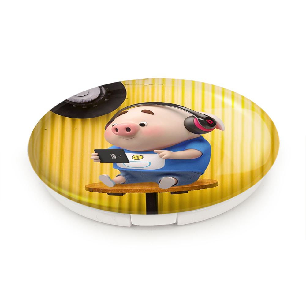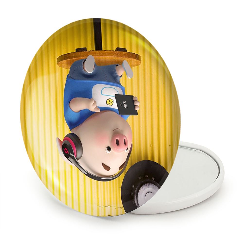 آینه های تاشو بچه خوک خندالو، از جنس پلاستیک فشرده ABS تولید شده و به رنگ سفید می باشد. یکی از آینه ها ابعاد واقعی را نشان داده و دیگری با قابلیت بزرگنمایی، جزئیات را بهتر نمایش می دهد. ابعاد هر یک از آینه ها، دایره ای به قطر 7.5 سانت می باشد که نه خیلی بزرگ و غیر قابل استفاده در کیف آرایشی ست و نه خیلی کوچک که تصویر خاصی در آن مشاهده نشود. آینه تاشو بچه خوک سایزی استاندارد و کارآمد دارد و در هر کیفی جا میگیرد. چاپ طرح بوسیله چاپگرهای دیجیتال شش رنگ با شفافیت و کیفیتی مثال زدنی بر روی یک وجه از بدنه ی آینه انجام گرفته و با روکش لمینت حرارتی پوشیده شده که در مقابل آسیب و خط و خش مقاوم بوده و کیفیت بالایی دارد. درب آینه بوسیله قفل بدنه ی آن، باز نمی ماند و کاملا بسته می شود و مناسب قرار گیری در کیف لوازم آرایش و کیف های کوچک دستی نیز هست. آینه های تاشو بچه خوک خندالو با تنوع طرحی بسیار بالا، سلیقه هر نوع مخاطبی را تامین میکند.