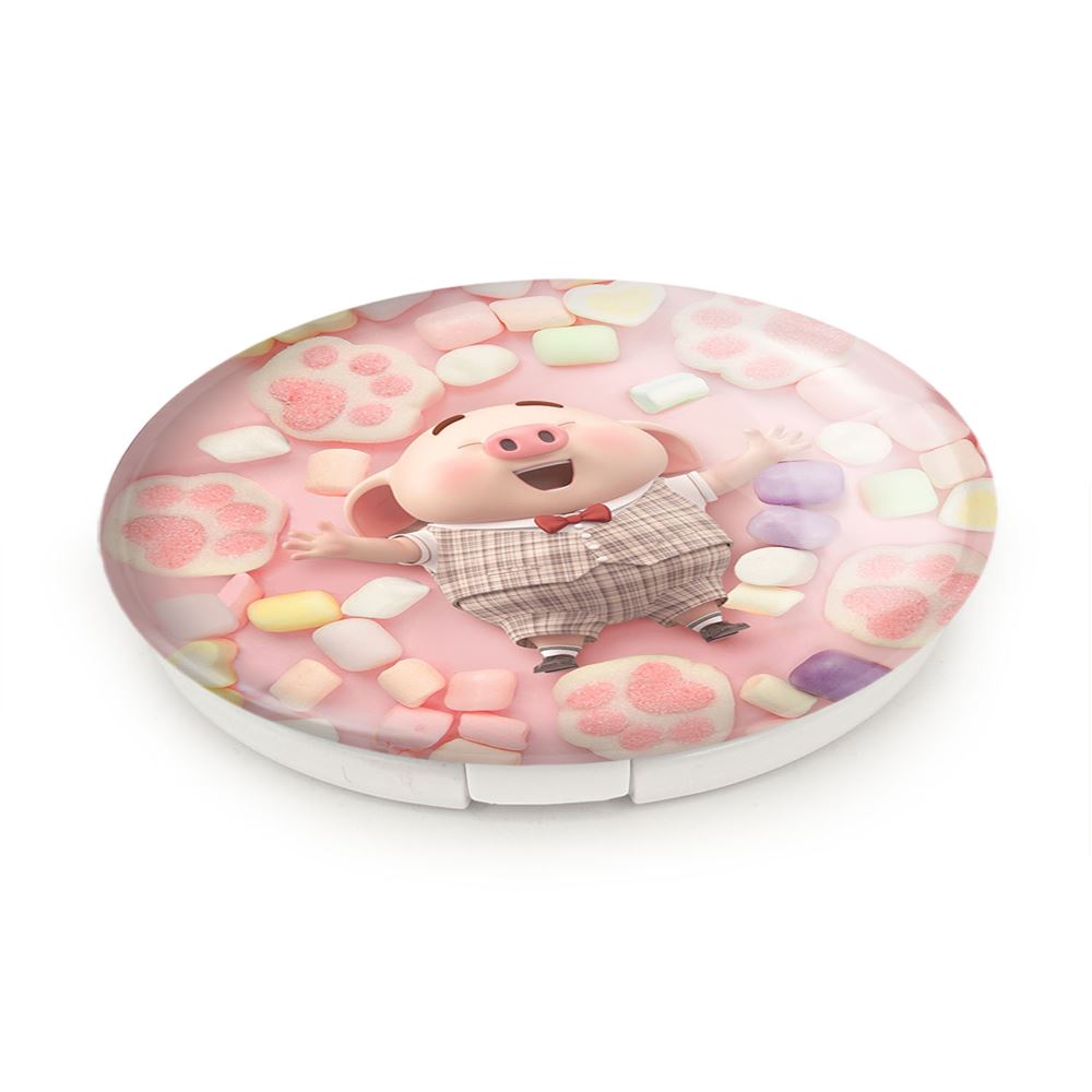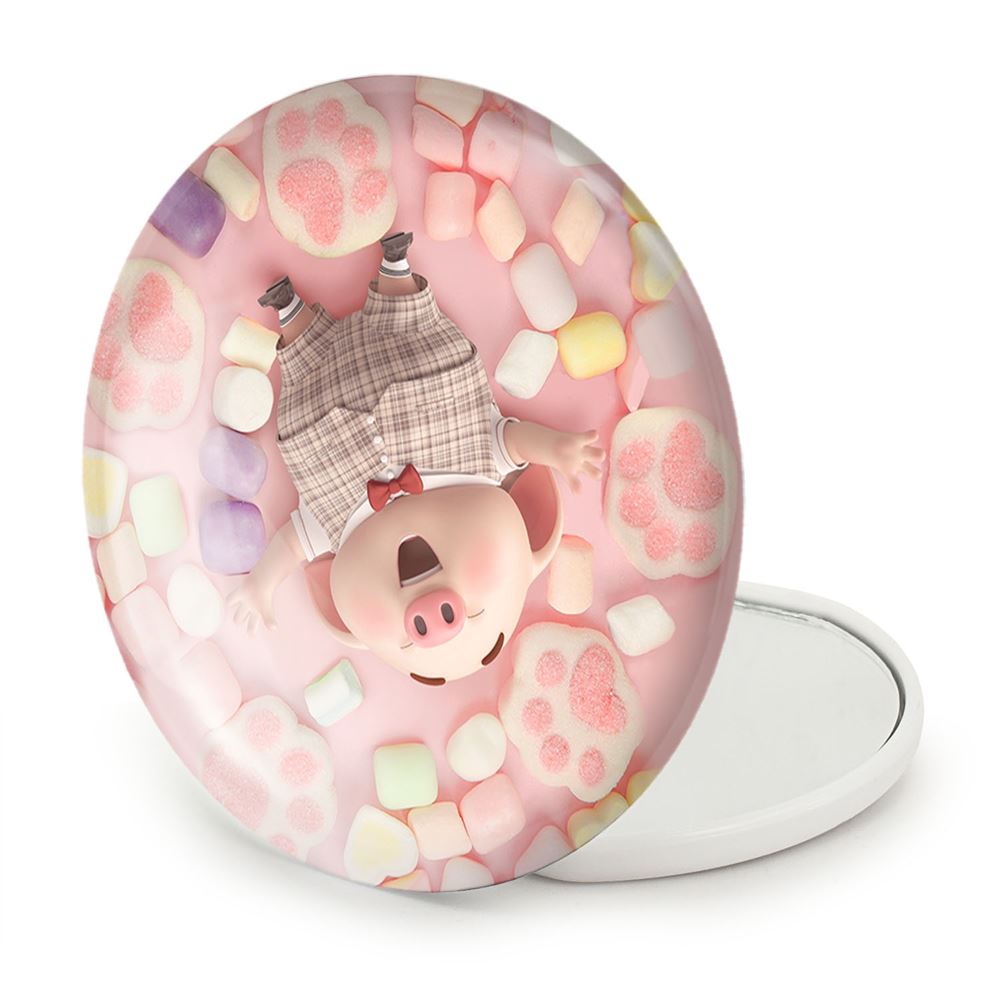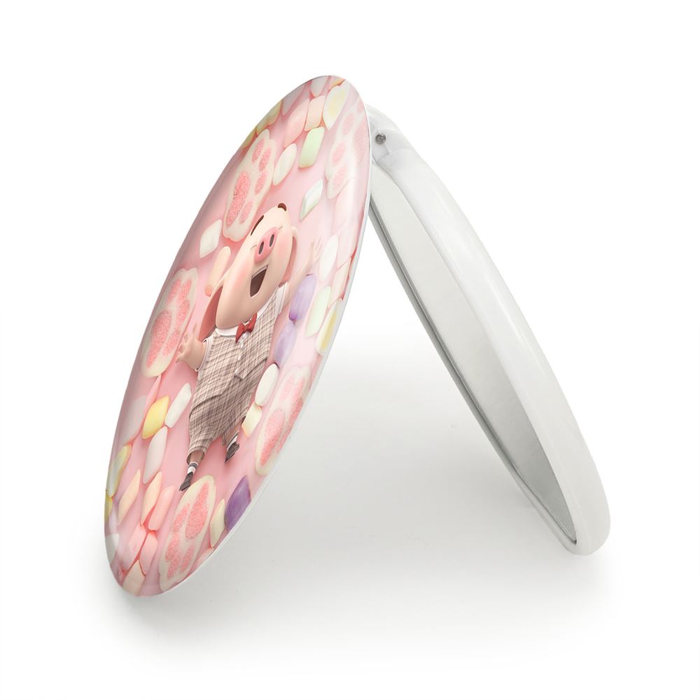 آینه های تاشو بچه خوک خندالو، از جنس پلاستیک فشرده ABS تولید شده و به رنگ سفید می باشد. یکی از آینه ها ابعاد واقعی را نشان داده و دیگری با قابلیت بزرگنمایی، جزئیات را بهتر نمایش می دهد. ابعاد هر یک از آینه ها، دایره ای به قطر 7.5 سانت می باشد که نه خیلی بزرگ و غیر قابل استفاده در کیف آرایشی ست و نه خیلی کوچک که تصویر خاصی در آن مشاهده نشود. آینه تاشو بچه خوک سایزی استاندارد و کارآمد دارد و در هر کیفی جا میگیرد. چاپ طرح بوسیله چاپگرهای دیجیتال شش رنگ با شفافیت و کیفیتی مثال زدنی بر روی یک وجه از بدنه ی آینه انجام گرفته و با روکش لمینت حرارتی پوشیده شده که در مقابل آسیب و خط و خش مقاوم بوده و کیفیت بالایی دارد. درب آینه بوسیله قفل بدنه ی آن، باز نمی ماند و کاملا بسته می شود و مناسب قرار گیری در کیف لوازم آرایش و کیف های کوچک دستی نیز هست. آینه های تاشو بچه خوک خندالو با تنوع طرحی بسیار بالا، سلیقه هر نوع مخاطبی را تامین میکند.